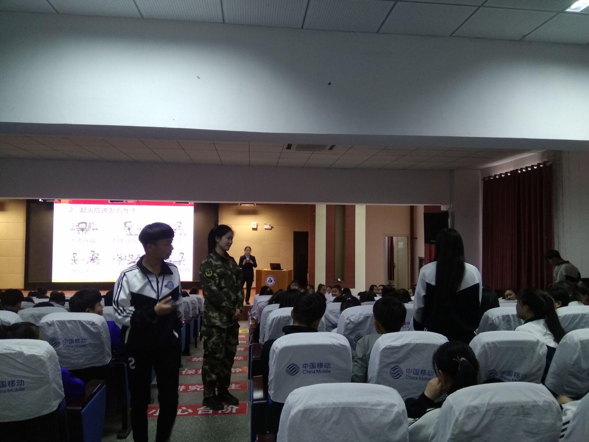 刘警官结合近年来的火灾案例,就消防的日常管理、平常检查,遵守以及疏散逃生的基本常识、消防火灾的应急和预防、消防器材的正确使用方法进行深入浅出的讲解,列举了大量实例和图片,展示缺乏消防意识和消防知识的严重危害,并结合实际对火灾特点、预防火灾的基本常识,火灾发生、发展、熄灭的基本规律和特点等方面知识进行了详细讲解,传授了防范措施和如何对初期火灾进行补救,以及如何组织人员疏散、火灾自救与逃生方法等知识。期间,刘警官还结合日常生活中所接触到的安全隐患提问,与学生进行了互动与沟通。