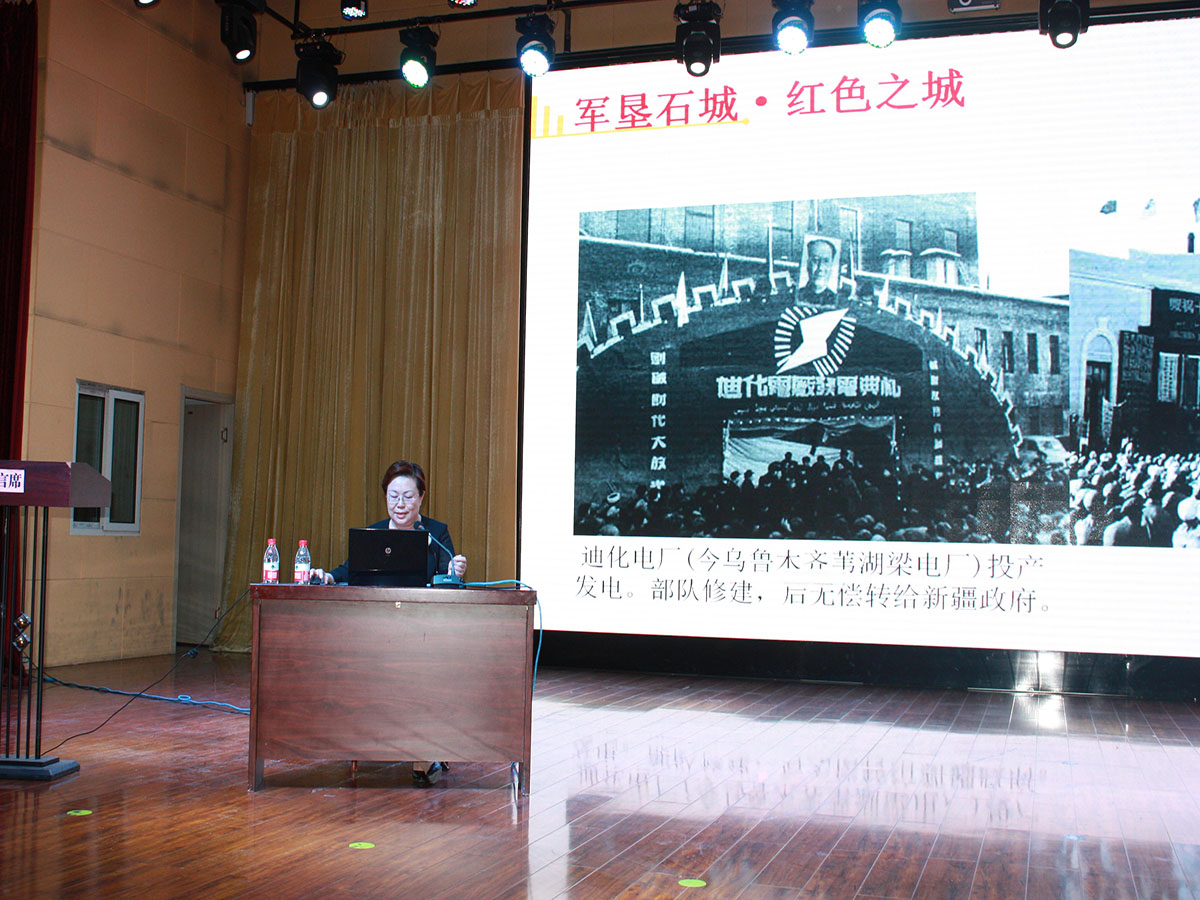乐副市长用饱含深情的语调、图文并茂的方式、真切感人的事例、渊博的知识积淀介绍了军垦石城红、绿、诗的特色,字字铿锵,句句充满了作为石河子人的骄傲,在场的师生不断报以热烈的掌声,当她播放参加中央电视台《魅力中国城》栏目视频“军垦三代人向祖国报到”“一生只做一件事,我为祖国当卫士”画面时,深深感染了每位听众,大家都为三代军垦人屯垦戍边的生命坚守与热血担当泪洒现场。