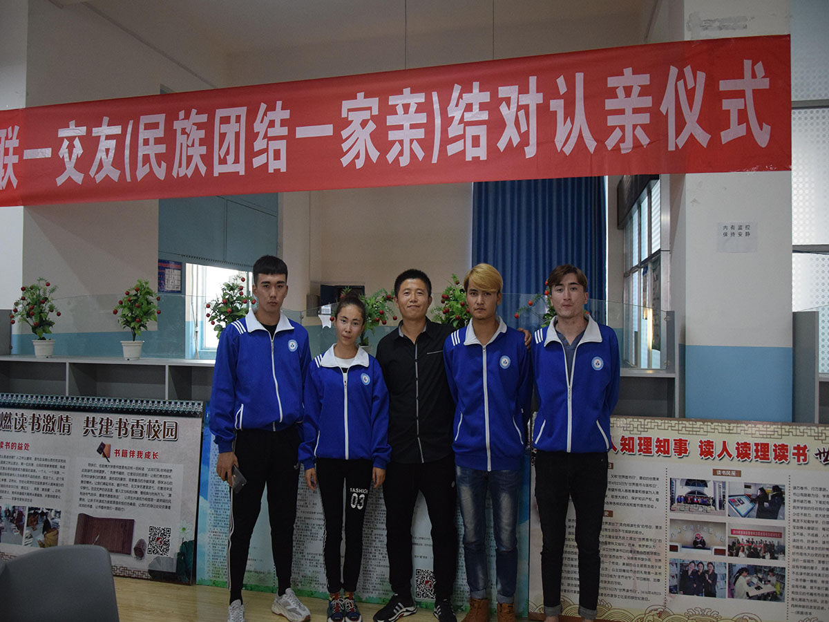 分院的两名少数民族学生代表阿布都·沙拉木和艾山江·阿布拉进行了发声亮剑发言。随后2018级新同学带来的歌曲演唱、少数民族同学跳起民族舞蹈,把结亲仪式推向了高潮。结亲的老师和同学认真填写连心卡,互相了解彼此情况,结亲师生合影留念,师生的情谊从一张张热情的照片开始。