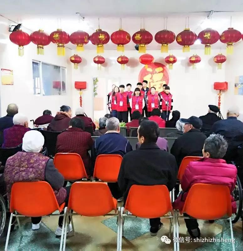 我的同学们在此次活动中,为老人们准备了很多精彩的节目,节目的开始是由组织部带来一首<大中国>,歌音浑重,歌声嘹亮,偶然间感觉满屋子都是爱国的味道。然后就是社团部带来的滑稽四人脱口秀:“话说上帝给了我一双眼,教我如何去发现……”画风虽然有些简单,但这脱口秀却秀的不错。这个年纪的我们朝气蓬勃,青春洋溢,帅气的小伙子为老人们献上一曲吉他独奏<这个年纪>,悦耳的音节,舒心的音乐,带我们感受了一把属于青春的气息。
