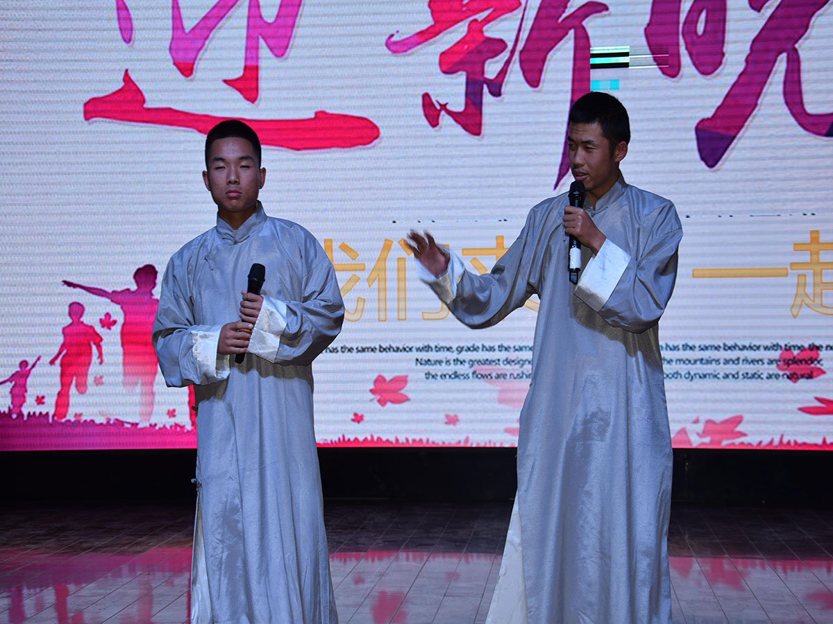晚会以一场动感十足的舞蹈串烧拉开了帷幕,现场观众迅速融入到了晚会的欢快气氛中,随之欢呼鼓掌。随后,大二学生给大家表演的歌曲,点燃了全场观众的激情;古琴表演更是精彩,音乐清婉,引起了观众的阵阵惊叹。而美丽的维吾尔族小姑娘、小伙子们带来了精彩的新疆舞蹈,更是给本台晚会增色了不少,她们曼妙的舞姿,将民族舞的魅力展现的淋漓尽致,在一圈圈的旋转中,犹如翩飞的蝴蝶,引起场下一阵又一阵的掌声,此时此刻,我们更感受到了各民族和睦相处,和谐共生。还有相声《成长的烦恼》,两位演员栩栩如生的表演,幽默搞笑的段子令场下的观众一个个捧腹,将整个晚会带入了一个小高潮。歌曲、舞蹈,相声,乐器表演等节目精彩纷呈、高潮迭起,给老师和同学们带来了一场别开生面的视觉盛宴。