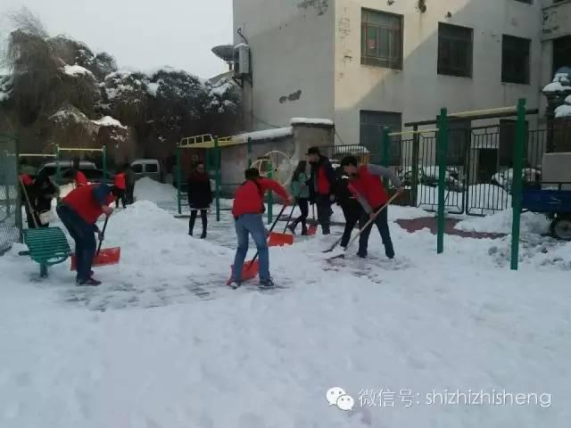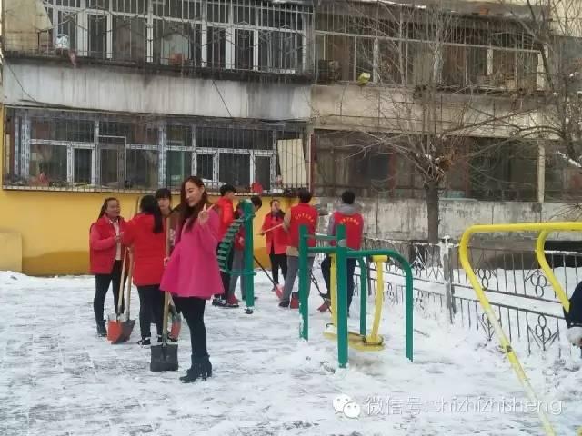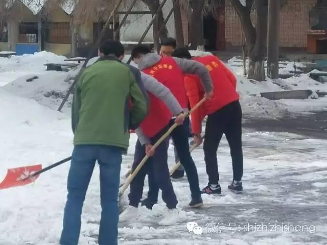 地上的雪虽然洁白而美丽,但对于社区以及养老院的老人们来说这些雪对他们而言无疑是行动的障碍,因此作为雷锋精神继承人的我们必须铲掉这些障碍。