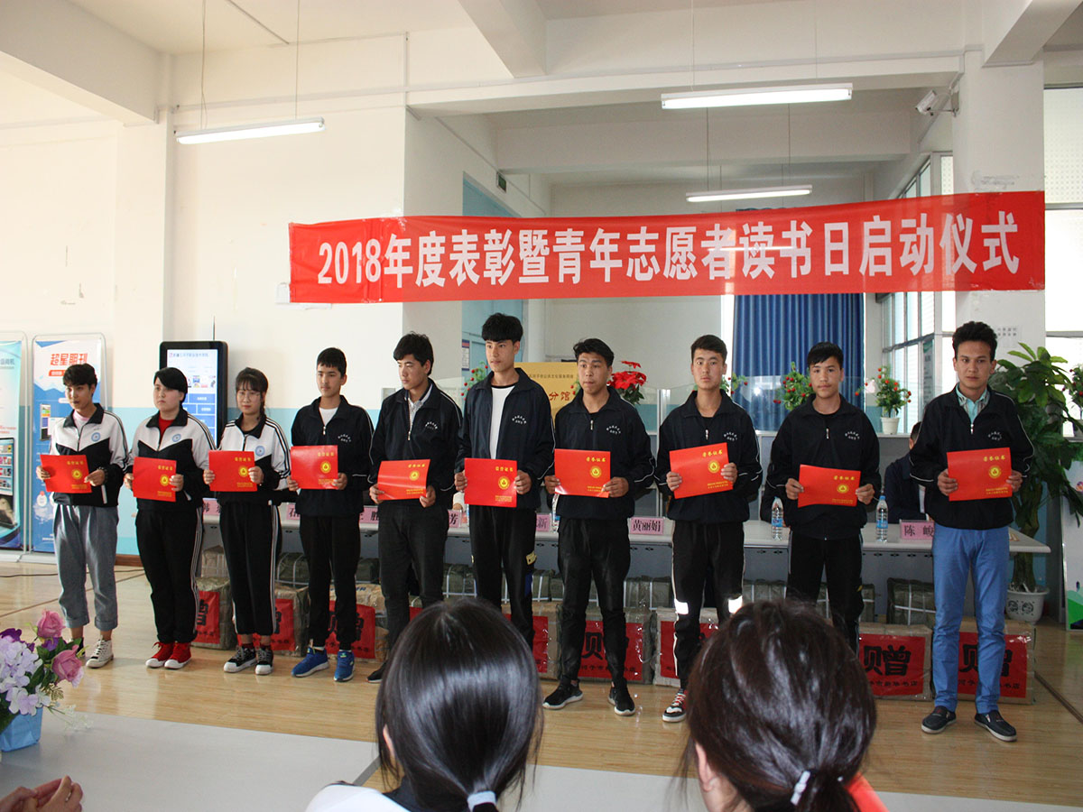 表彰会上,各位领导为2018年度18名读书征文优胜者和2018年度10名图书馆服务优秀志愿者、5名优秀读者和10名征文优秀指导老师、民族一家亲汉字大赛优秀奖15名同学颁发了荣誉证书和奖品。与会老师和同学们一起分享了经典诵读作品,赢得了大家的阵阵掌声。