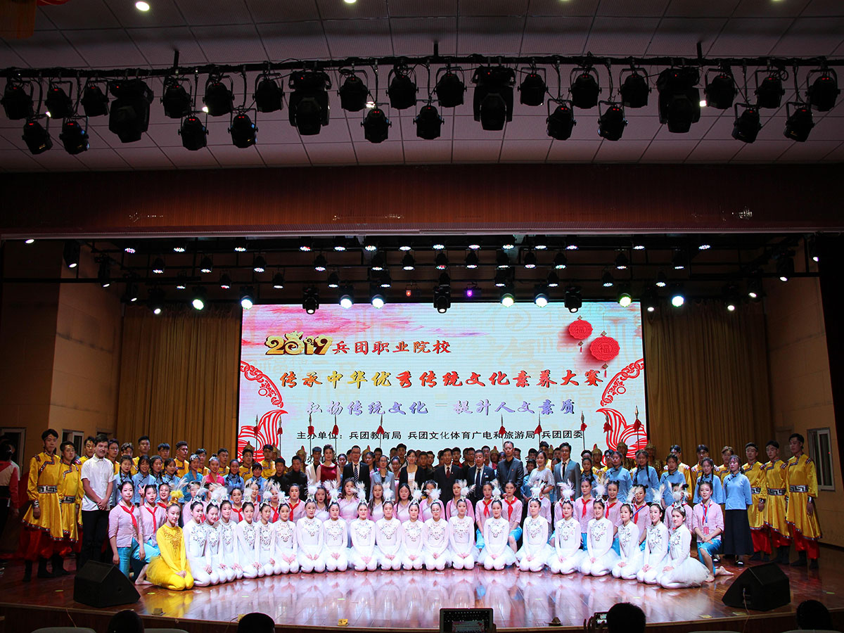 2019年5月9日,由兵团教育局、兵团文化体育广电和旅游局、兵团团委主办,兵团职业教育学会德育工作委员会协办,Beat365中文官方网站承办的兵团职业院校传承中华优秀传统文化素养大赛闭幕晚会在Beat365中文官方网站举行。