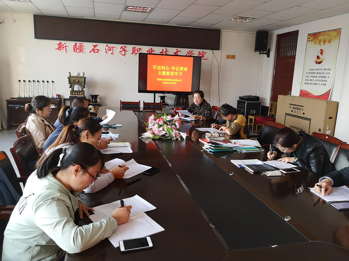 2019年10月10日,旅游与经济管理分院党总支在三楼会议室进行了“不忘初心、牢记使命”主题教育集中学习研讨,分院书记马彩梅带领全体党员结合工作实际深入学习了《习近平新时代中国特色社会主义思想学习纲要》《习近平关于“不忘初心、牢记使命”重要论述选编》。