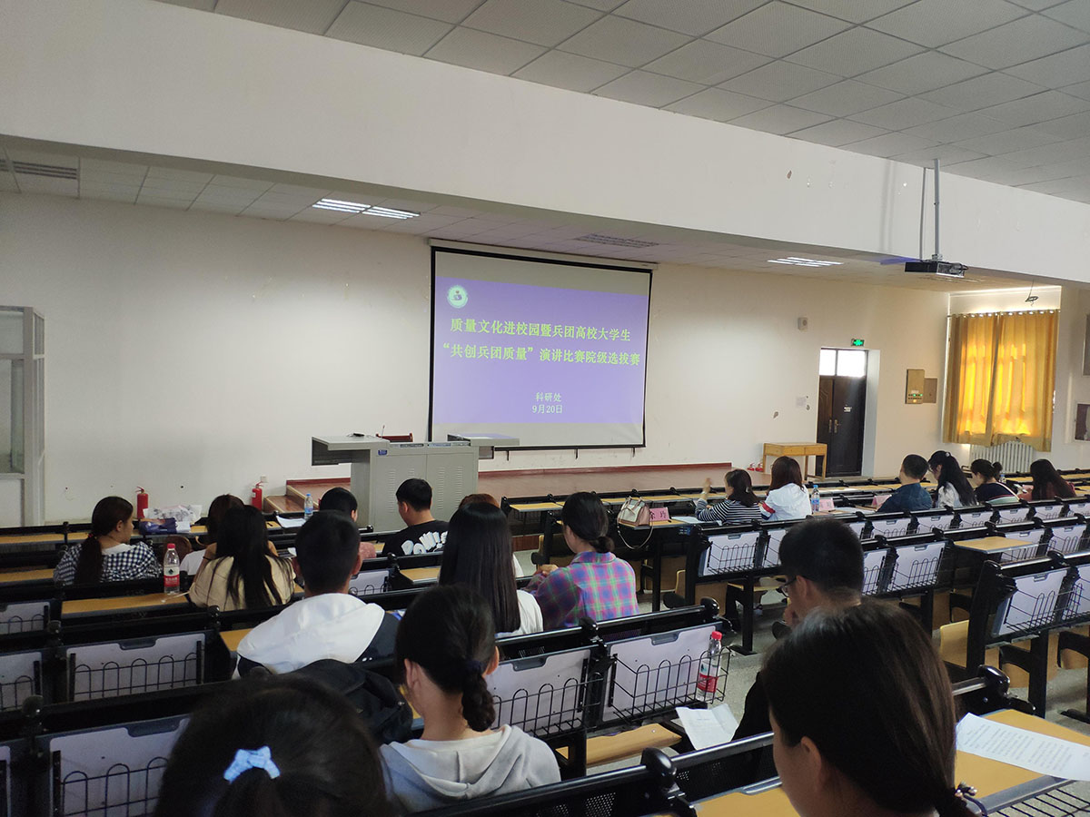 为深入推动兵团高质量发展,迎接第42个全国“质量月”,庆祝新中国成立70周年,9月20日,在学院综合楼二楼阶梯教室举行了质量文化进校园暨兵团高校大学生“共创兵团质量”演讲比赛院级选拔赛。比赛由质量督导办组织,评委组成员、参赛学生参加了本次比赛。