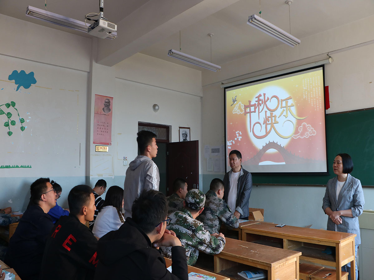 分院书记胡英预祝同学们中秋节快乐,然后给新同学介绍了学院和分院的基本情况,介绍了各部门的老师,如果个人今后学习生活有困难要及时提出,学院、分院会尽力帮助解决。希望同学们珍惜学习机会,保持良好的学习、生活习惯,学好专业知识,语重心长地说大家彼此能成为师生、成为同学是一种缘分,希望通过此次活动更加珍惜这种缘分,在未来的道路上互帮互助,不断升华师生情、同学情,并代表全体教职工祝同学们节日快乐,学习进步。