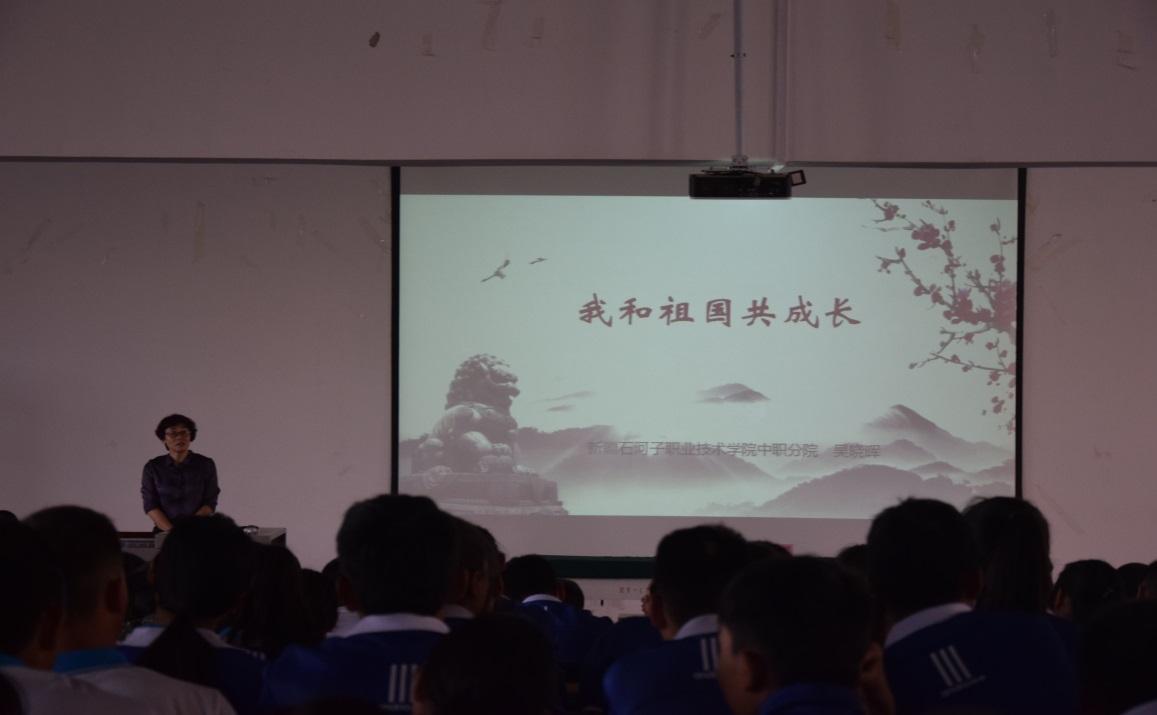 在新中国成立70周年之际,学院中职分院的“开学第一课”紧扣时代脉搏,以“我和祖国共成长”为主题,由中职分院吴晓晖院长在综合楼二楼阶教对分院1300名2019级新生进行了一次感人至深的爱国主义教育,以“我和祖国共成长”为主题开启了新学期的旅程。