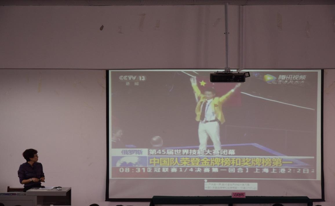 首先,吴院长对刚刚步入职院生活的2019级新生表示热烈的欢迎,接着在“五星红旗,你是我的骄傲;五星红旗,我为你自豪……”的歌声中为大家讲述了新中国成立70周年的历程。1949年10月1日,新中国第一面五星红旗在北京天安门广场冉冉升起;1984年,我国运动健儿第一次获得奥运金牌,五星红旗第一次在奥运赛场冉冉升起;几代攀登珠穆朗玛峰的登山者,用自己的身体和生命将五星红旗插上珠峰峰顶;1997年和1999年香港和澳门相继回归祖国的怀抱,五星红旗又成为了港澳同胞最温暖最坚实的依靠……五星红旗不仅飘扬在世界最高峰,还飘扬在茫茫无边的大海上,守护国家海疆的安全;飘扬在浩瀚无垠的宇宙,在月球的背面闪闪发光;五星红旗飘扬在每一个中国人的心中,它是我们眼中最美的旗帜,是我们最坚实的依靠,是我们最崇高的信仰。