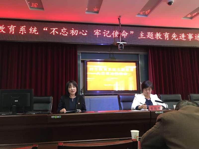 2019年11月12日下午,由八师教育局主办的师市教育系统主题教育先进事迹报告会在高中城举行。本次报告会以“不忘初心 牢记使命”为主题,来自八师石河子市的高校、中小学代表参加了现场会议,其余各教育单位以视频形式参加了会议。
