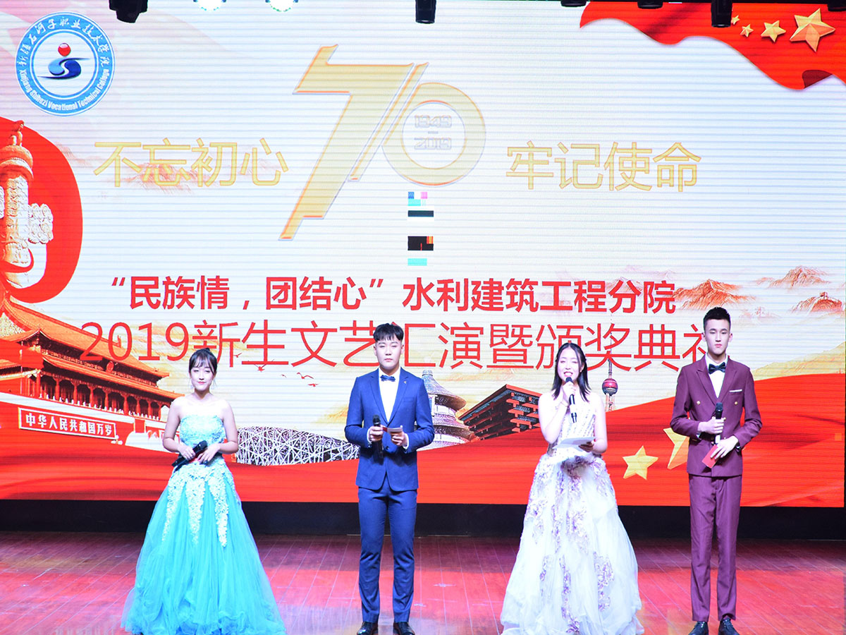 此晚会展现了许多精彩绝伦的节目,让大家不仅享受到了视觉盛宴,还聆听到了动听旋律,晚会中的诗朗诵、民族舞歌舞等节目,将民族团结、爱国精神,以及青春、梦想 这些元素结合,更是将爱国主义情怀表现的淋漓尽致。这次晚会是新生的盛会,更是水利建筑工程分院的盛会。