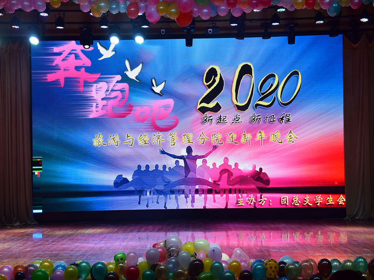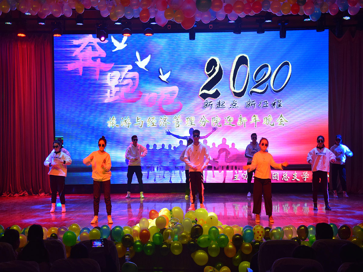 2019年12月30号下午6:30旅游与经济管理分院开展以“奔跑吧,新起点,新征程”为主题的迎新年晚会在综合楼四楼阶梯教室举行。莅临本次晚会的嘉宾有分院书记马彩梅、院长栗劲松以及分院教职工。