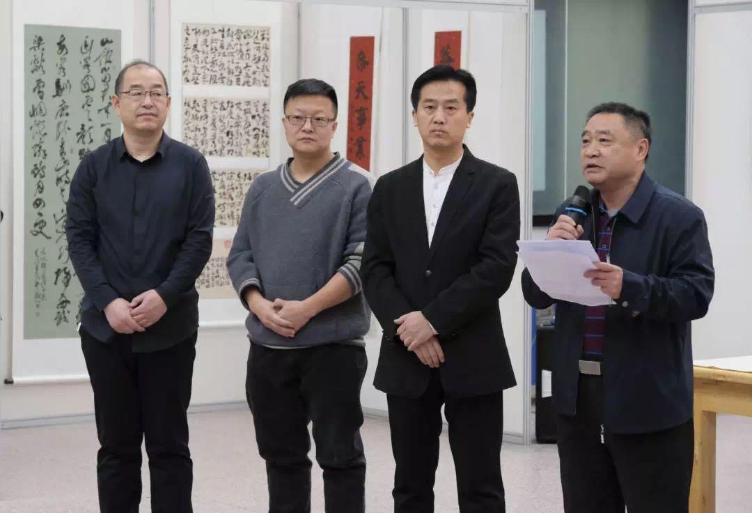 2019年12月22日上午,由石河子书法家协会、石河子美术家协会、石河子书画院承办的“足迹·2019 师市文化名人创作人才培养计划书法美术作品汇报展”在石河子市老年大学三楼书画展厅拉开帷幕。师市老领导、石河子老年大学校长王希科,石河子市副市长乐旸,师市党委组织部副部长、老干局局长宋云鸣,兵团书法家协会主席、师市文联副主席孙峰,兵团美术家协会主席、石河子书画院院长秦建新,兵团美协副主席、石河子大学教授段保国,石河子大学美术与设计系副主任陈功军,石河子书法家协会副主席高承刚,Beat365中文官方网站纪委书记周赞梅及学院师生、广大书画爱好者参加了开幕仪式。石河子文联党组书记、主席陆维斌主持了开幕式。