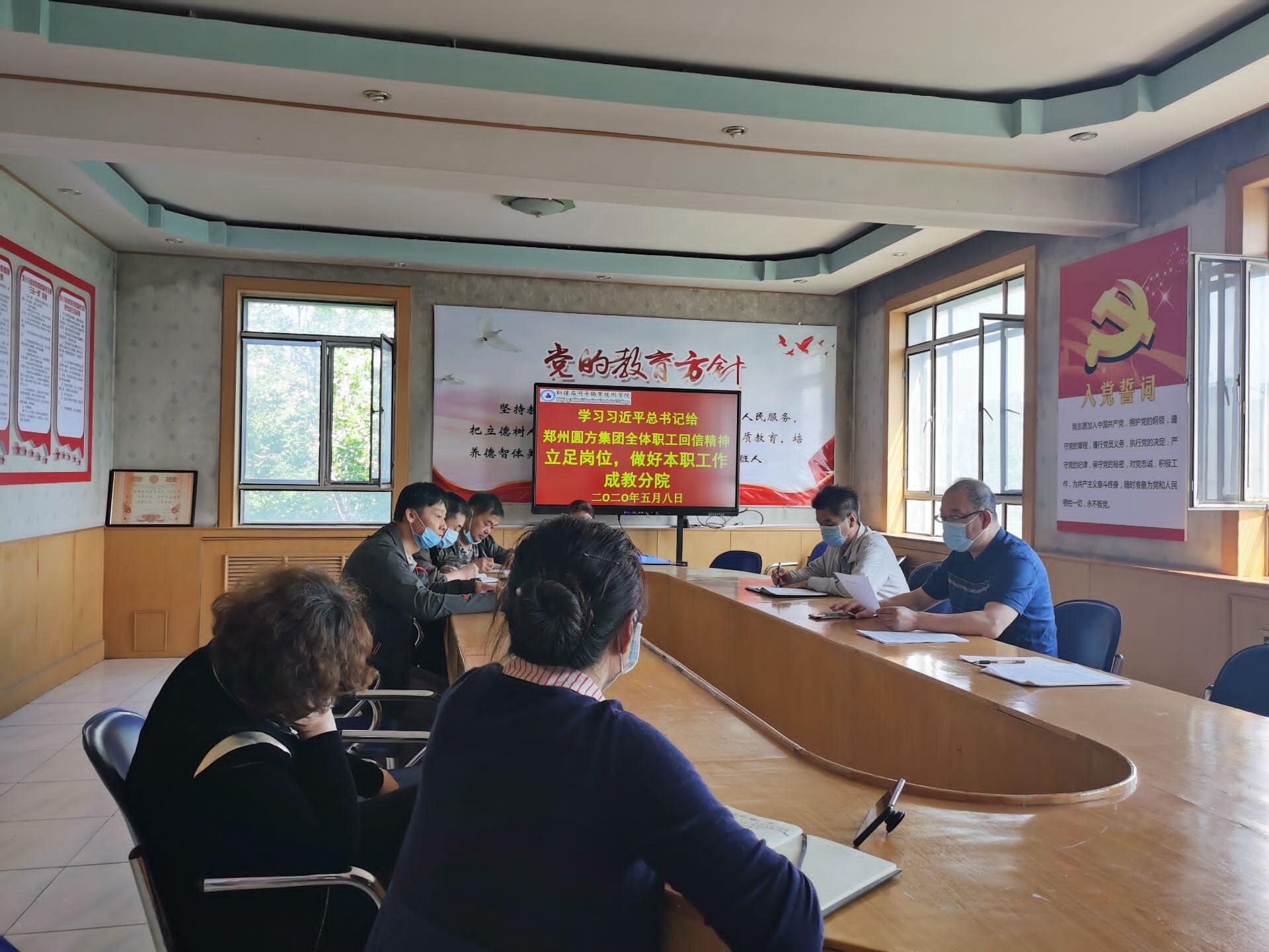 2020年5月8日,Beat365中文官方网站在全院范围内掀起了学习习近平给郑州圆方集团全体职工的回信》精神的热潮,认真学习贯彻习近平总书记给郑州圆方集团全体职工的重要回信精神。