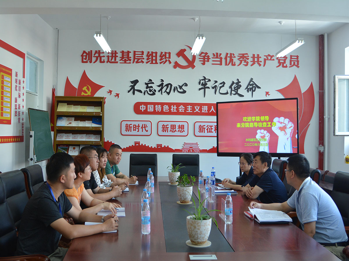 6月3日上午,学院党委书记陈立新同志在学院党政办主任张金果、工作人员汤玉燕陪同下赴水建分院检查指导工作。在前楼318会议室,检查组一行对党建档案进行实地检查,并听取了水建分院党建工作、学生管理、疫情防控等内容的专题汇报,陈立新书记对分院各项工作表示认可,对存在的问题进行现场点评与指导。