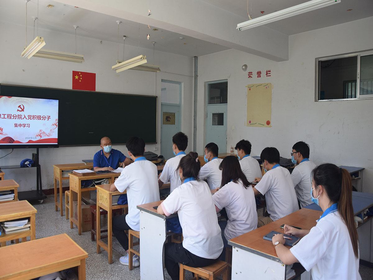 为深入做好党员发展工作和加强入党积极分子对党的认识,培养一支政治素质高、业务能力强的入党积极分子,促进同学间的思想交流,信息分院于2020年5月29日13:00,在303教室进行入党积极分子集中学习交流,由学院副院长周鑫担任主讲,11名2020年入党积极分子全员参加。