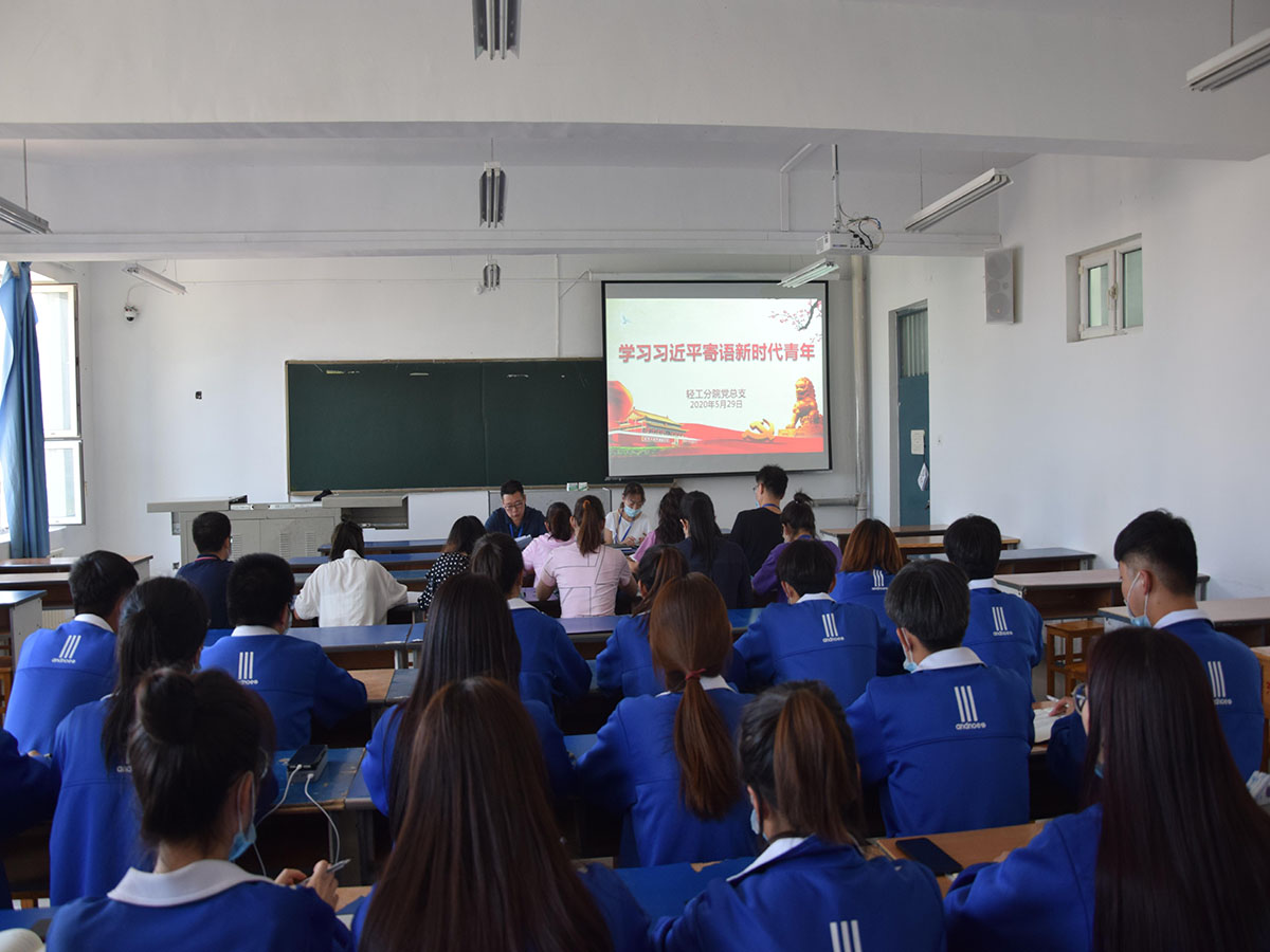 2020年5月29日下午,轻纺化工分院党总支在后楼420教室组织分院全体党员教师及分院35名入党积极分子认真学习了习近平总书记对新时代广大青年寄语等相关内容。