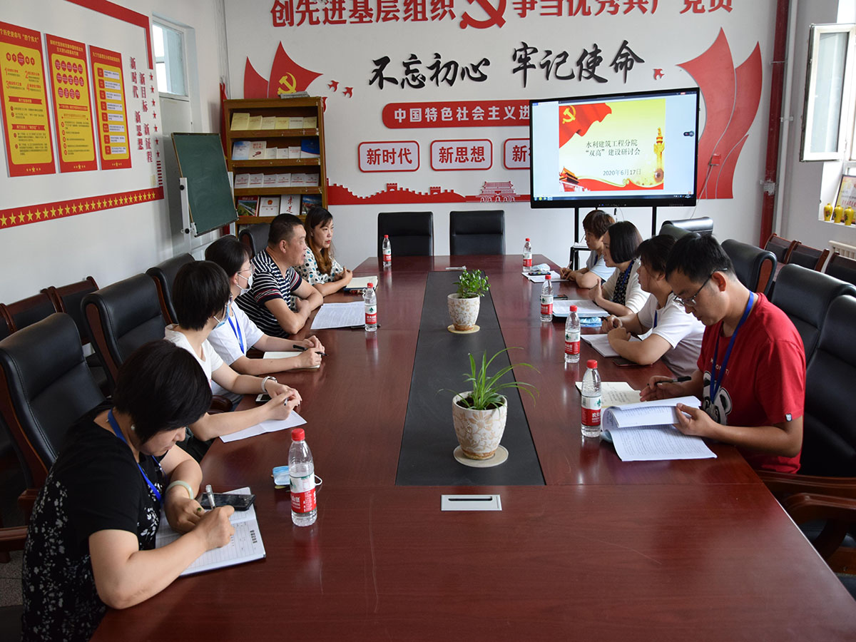 为进一步推进Beat365中文官方网站“双高”建设工作,6月17日上午在318会议室召开了“双高”建设研讨会。科研处处长胡英及科研处全体人员余玲,刘璐,尚明东老师,职教中心主任毛洪霞,水建分院院长弓中伟、副院长张婷及专任教师参加了会议,会议由弓中伟院长主持。