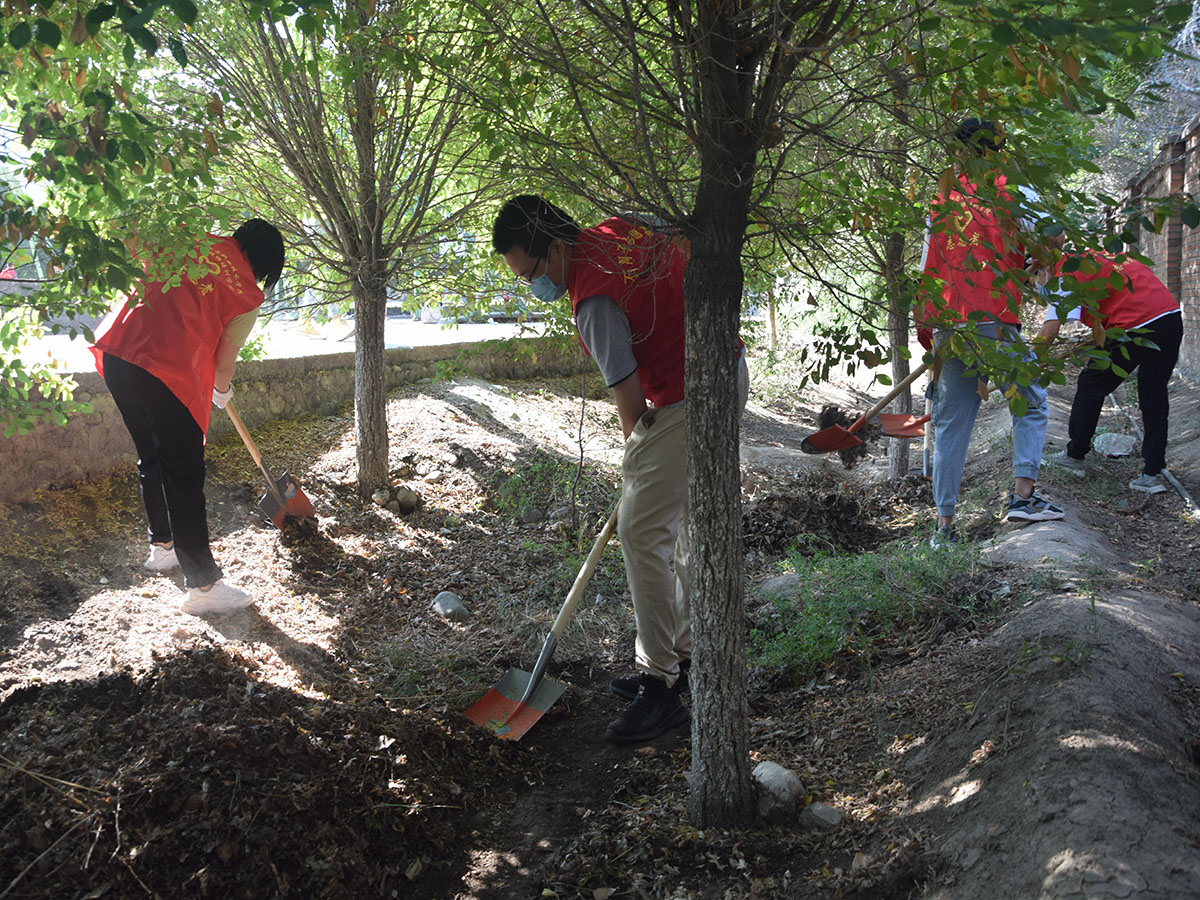 活动当日,分院学生会全体成员在分院书记徐通老师的带领下,对校园内的林带卫生死角进行了清理。在清理过程中,首先进行了明确的分工,随后还指导了草坪的清理工作。同学们有明确目标后紧接着进入工作状态,一部分同学负责用铁锹清理杂草和乱石,一部分同学用扫帚清扫纸屑、落叶、食品包装袋。经过同学们三个多小时的辛勤劳动,校园环境变得整齐有序,同学们也在劳动中进一步传承和发扬了无私奉献、乐于助人、艰苦奋斗的雷锋精神。虽然“与尘土齐飞”,但是每一位成员脸上都洋溢着快乐的笑容,深刻体会着奉献精神的意义。