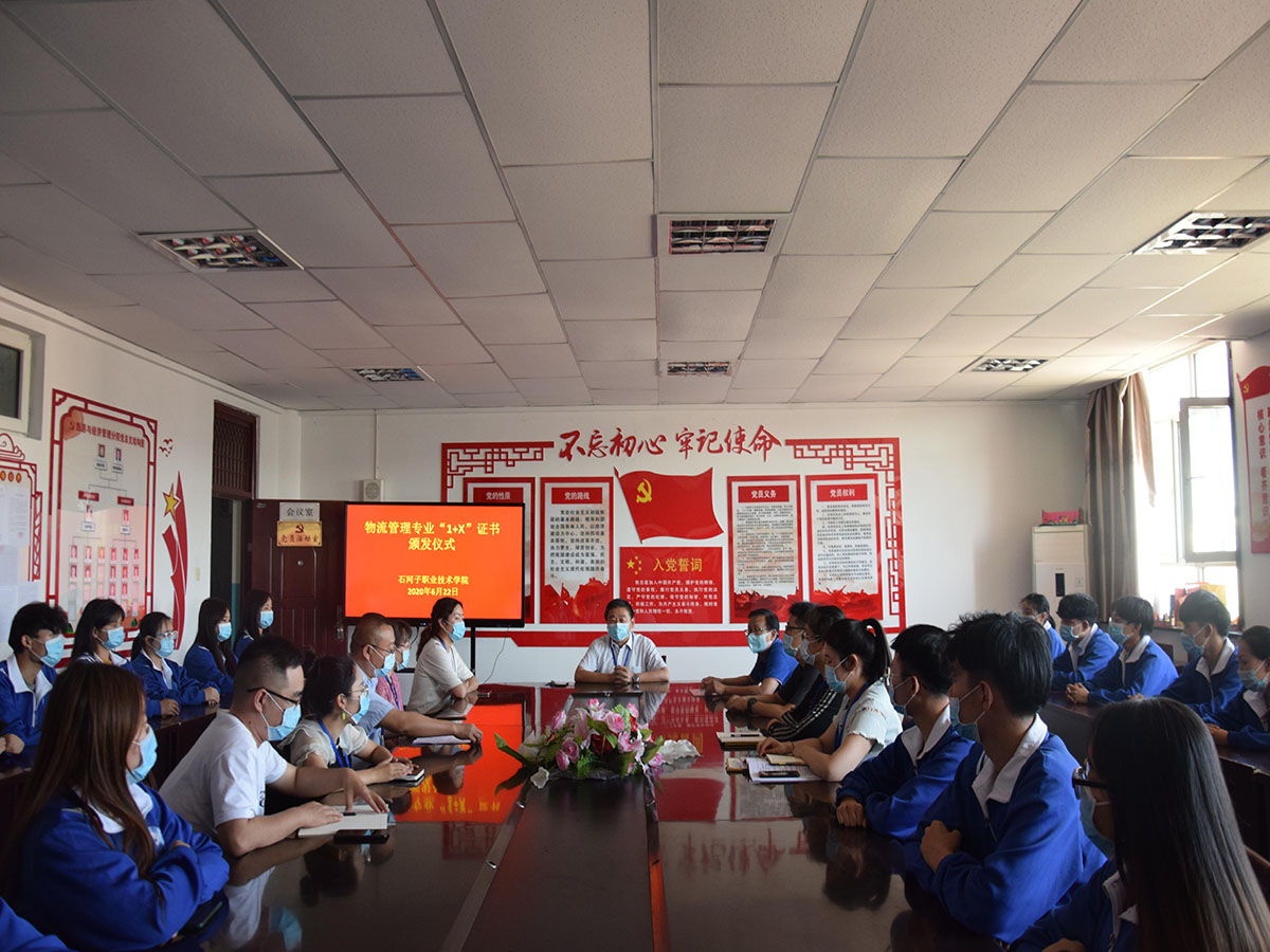 6月22日,旅游与经济管理分院全国“1+X”物流管理职业技能等级证书(中级)颁发仪式在前楼三楼会议室举行。学院院长王敏弦、教务处处长马彩梅、经贸分院院长栗劲松、保卫处副处长杨春、教务处尹升鹏老师、以及经贸分院物流专业“1+X”团队教师、首批通过考试的20位学生代表参加仪式。