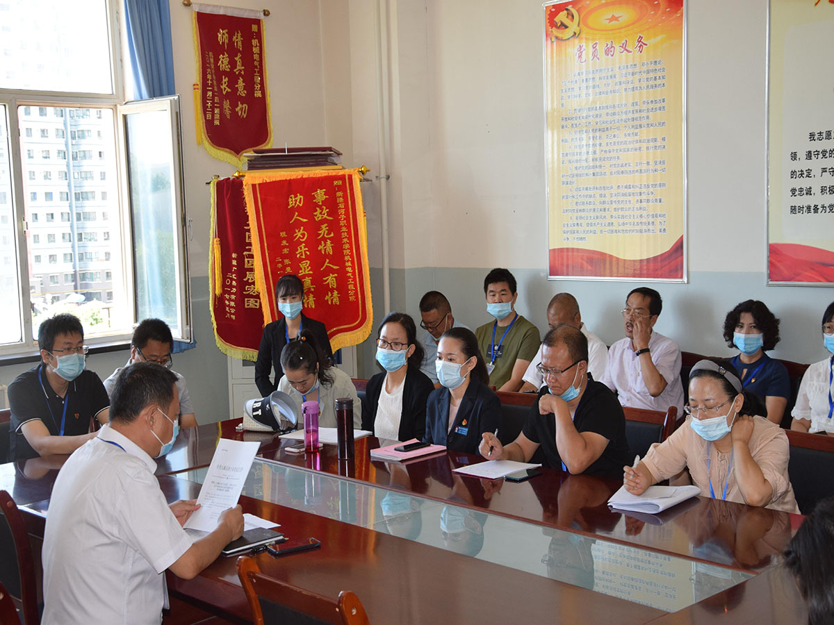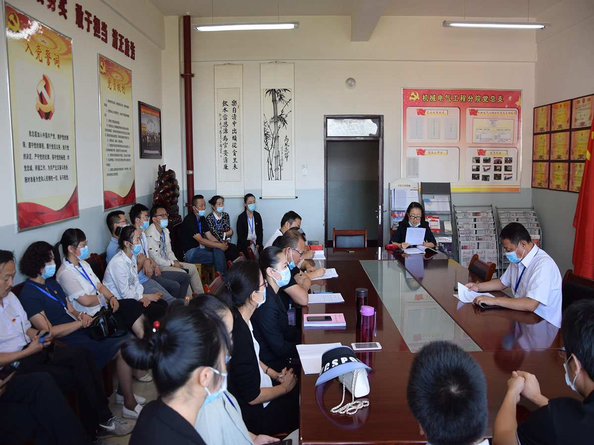 为庆祝中国共产党99岁华诞,学院举行了隆重的升旗仪式,全体党员庄严地重温了入党誓词。仪式结束后,机电分院党总支在会议室开展了主题党日学习活动,活动由辛延波书记主持。