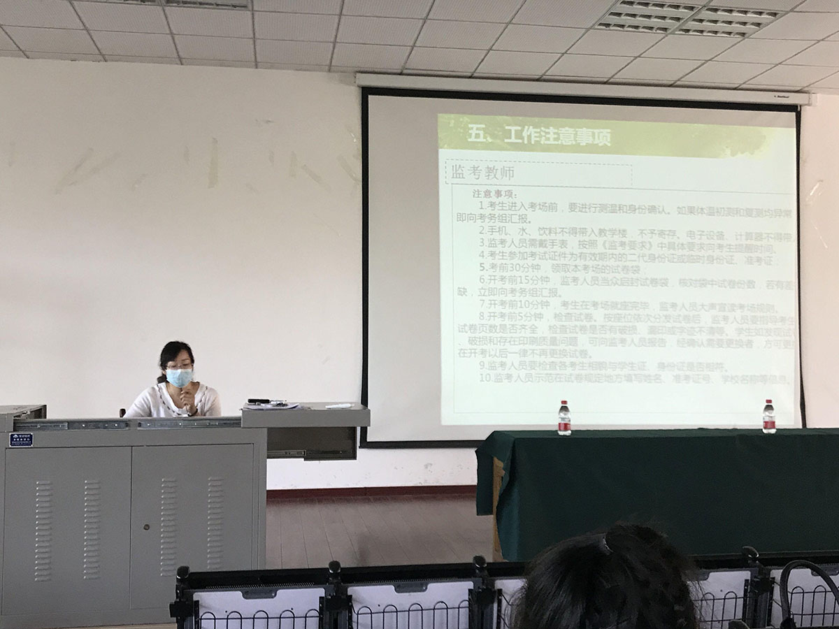 为落实到细节,6月26日,教务处组织相关人员进行了考务培训。培训会上,教务处徐海霞副处长就考试工作流程、学生违纪作弊防范、监考教师工作职责等方面内容进行了专题培训,并就一些考试细节问题做了强调和说明。