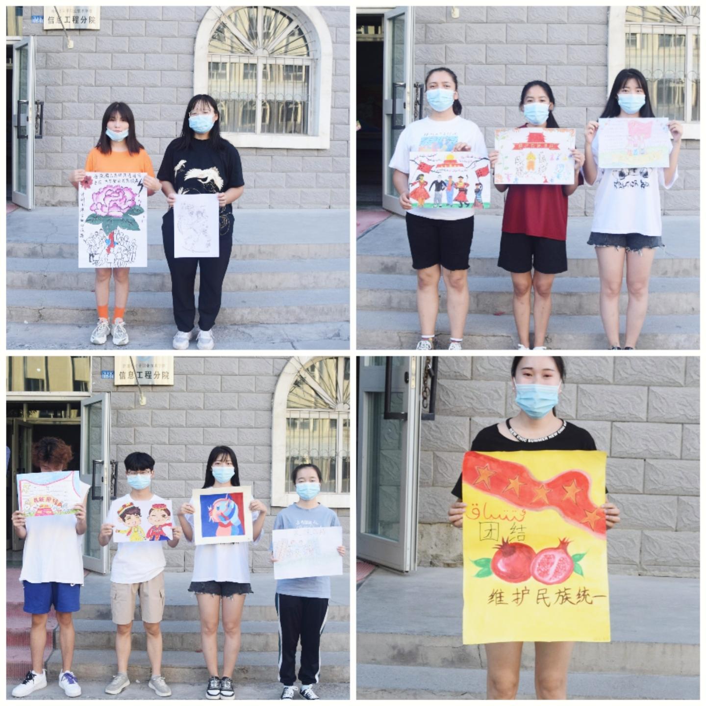 为了展示我院学生的才华艺术,同时也使同学们养成学生写好规范字,喜爱绘画艺术的良好习惯,提高学生的审美能力和鉴赏能力。为此信息工程分院于2020年8月2日在信息分院举行了“维护民族团结,捍卫祖国统一”书画大赛。