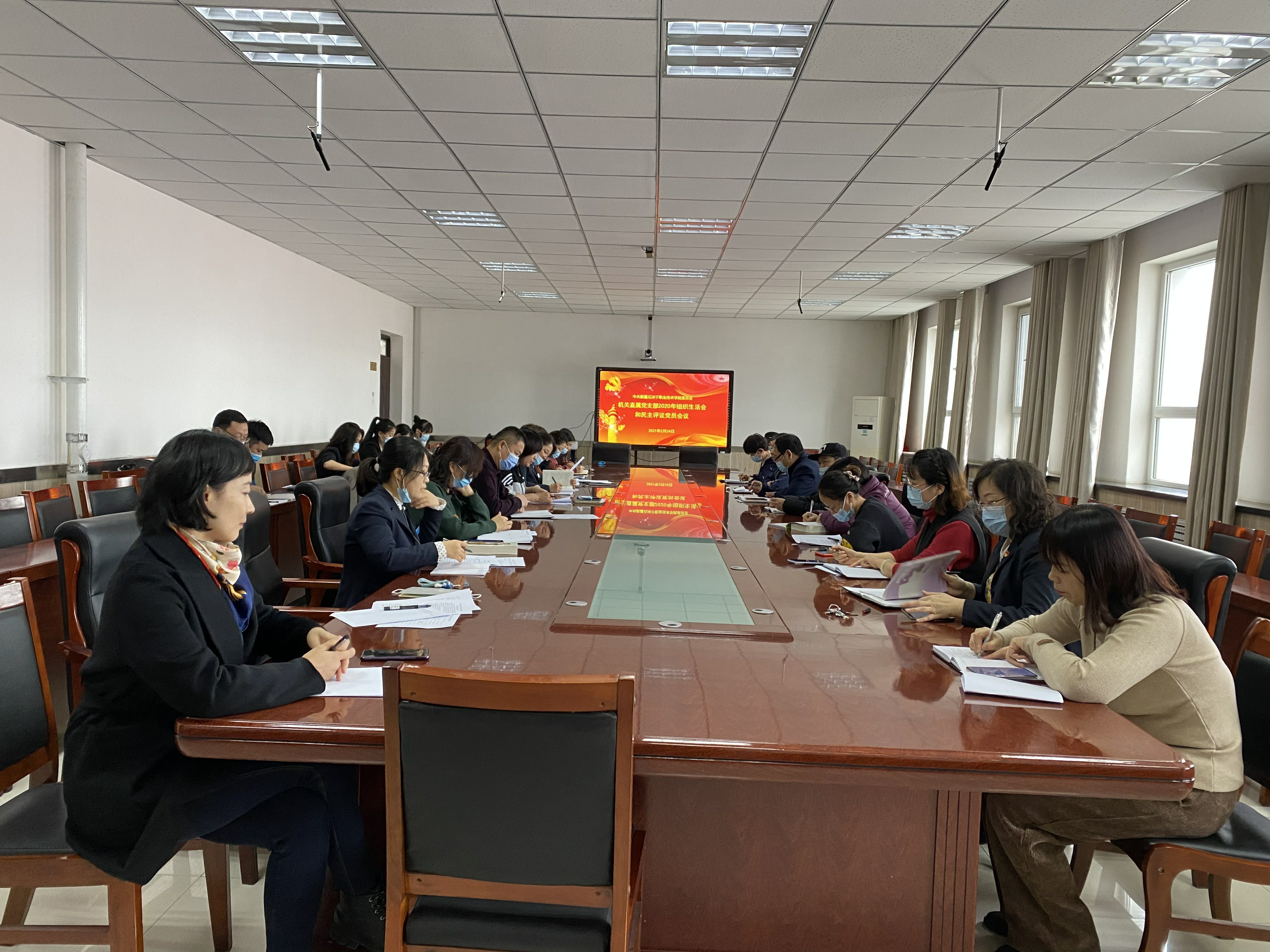 2月24日下午,按照学院党委要求,机关直属支部在培训中心四楼党员活动室召开基层党组织组织生活会和开展民主评议党员工作,严肃认真开展批评和自我批评,明确努力方向和整改措施。会议还对支部班子工作进行了评议,对党员进行了民主测评。会议由支部副书记张敏主持,纪委书记周赞梅以普通党员身份参加了会议,机关全体党员参加了会议。