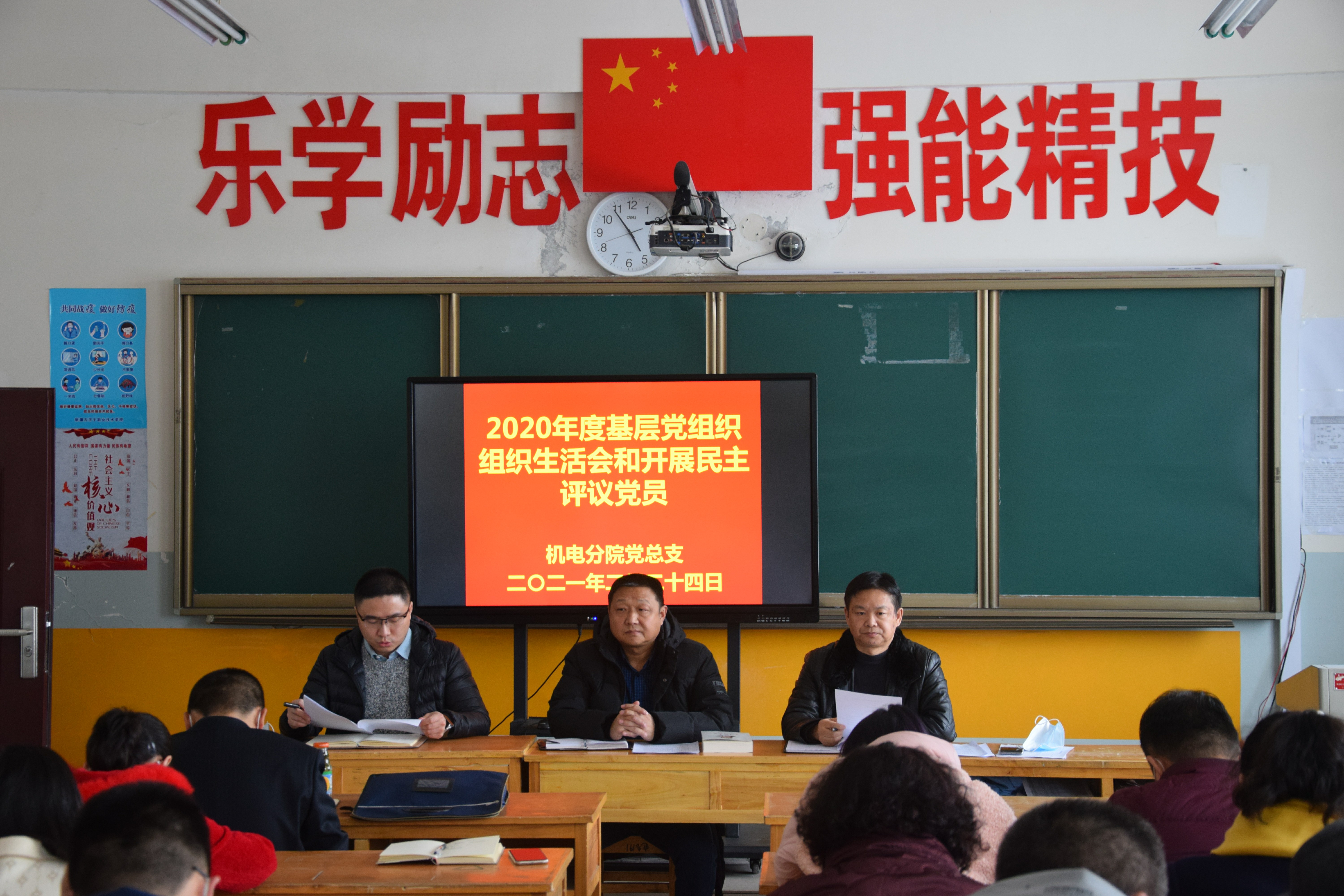 2021年2月24日下午,机电分院党总支分成两个支部,分别在机电分院会议室和406室召开了党员党性分析和民主评议会,会议由党总支书记辛延波主持。