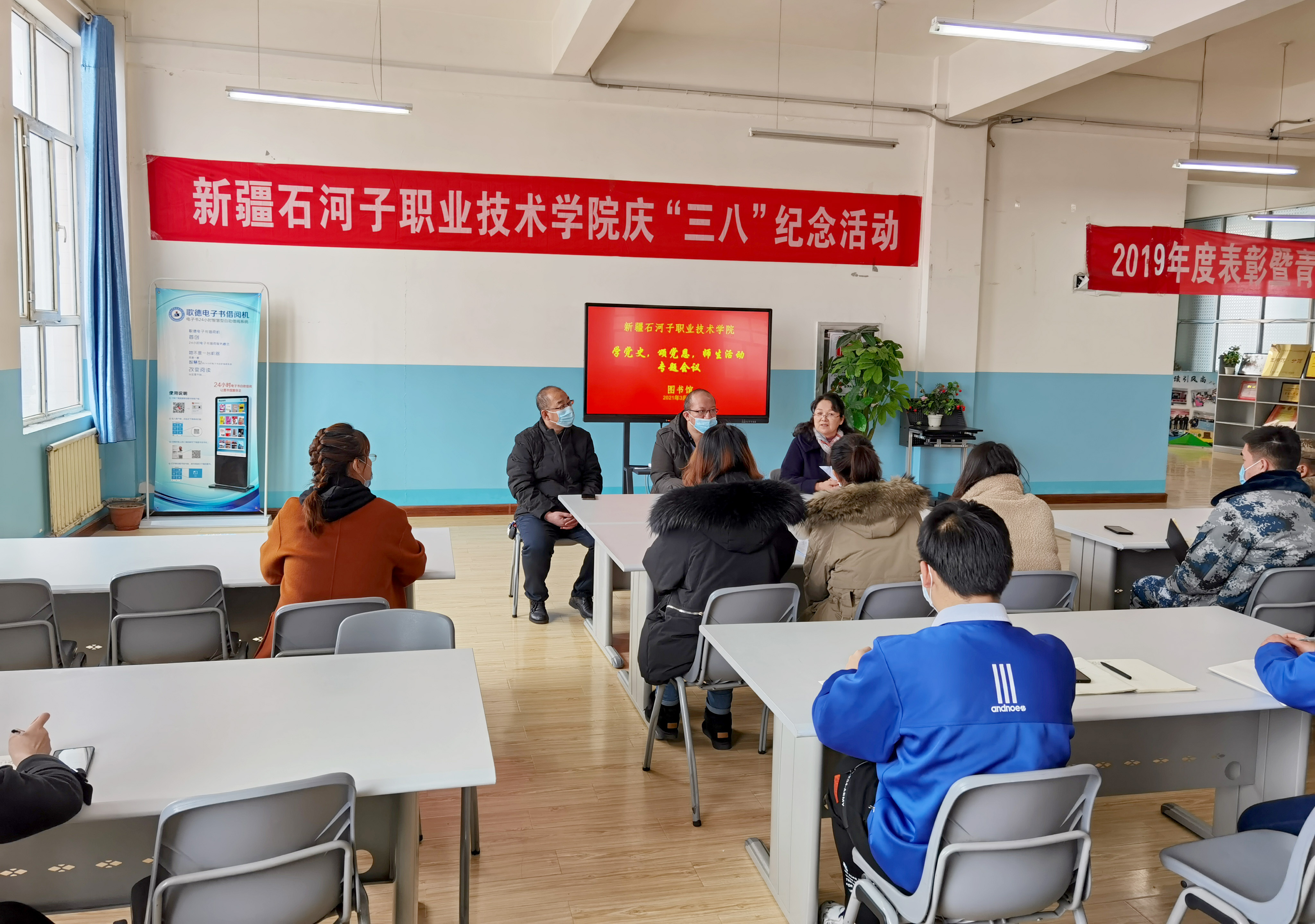 2021年3月11日下午,学院图书馆举行了“学党史,颂党恩师生活动”专题会议,学生处处长、学院校园文化双高项目负责人韩东,传统文化工作室负责人、成教分院院长王国强老师、李婵老师,来自分院、处室的教师代表和老师来自各分院的学生骨干代表参加了会议,会议由图书馆馆长陈建红主持。