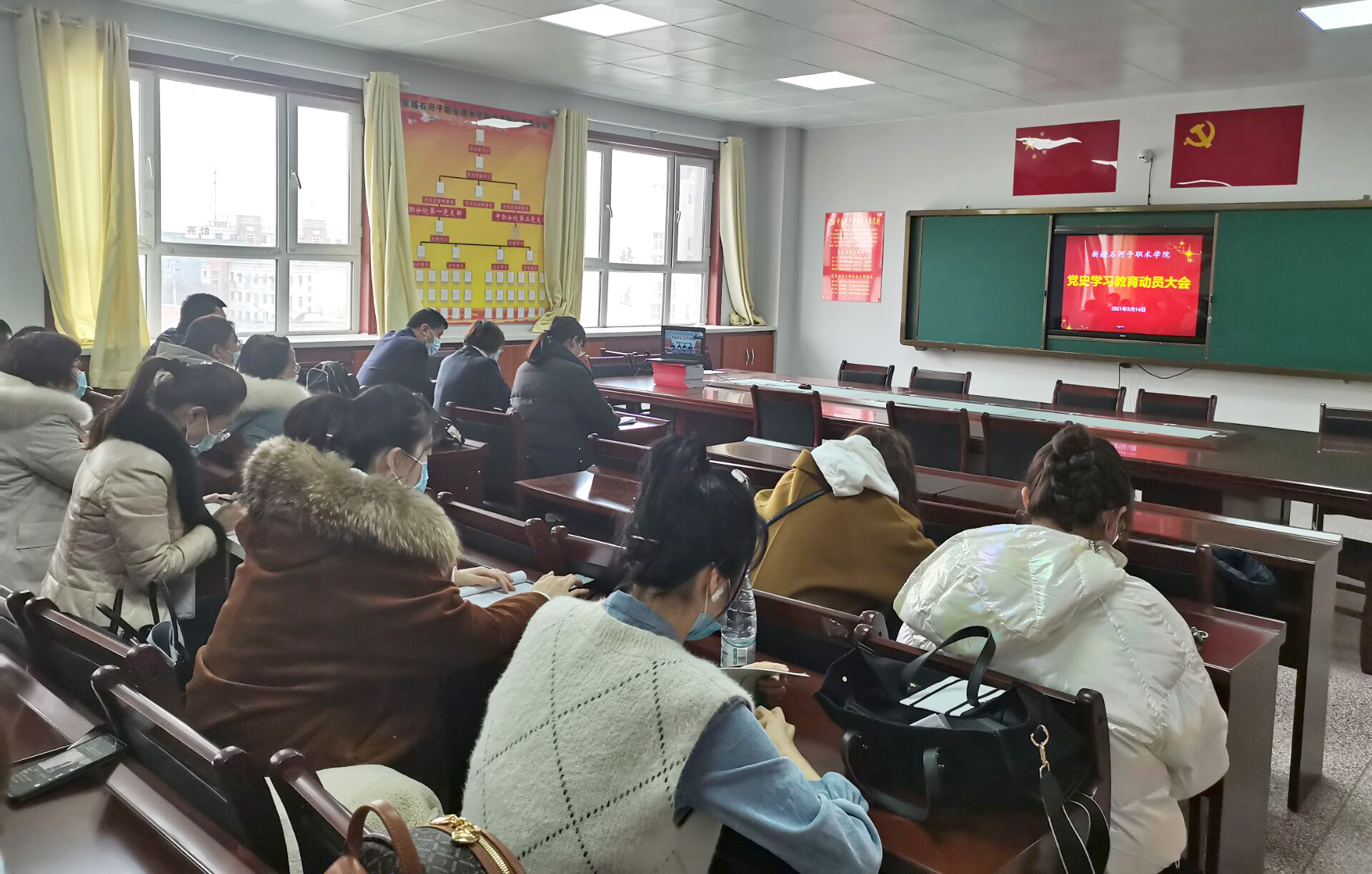 2021年3月14日上午10点30分,Beat365中文官方网站中职分院全体党员在北校区分会场参加了学院党史学习教育动员大会暨党委书记讲专题党课视频会议,中职分院党总支积极组织全体党员,克服路途远、网络不便等困难,提前多次调试设备,确保会议顺利进行并做充分准备。