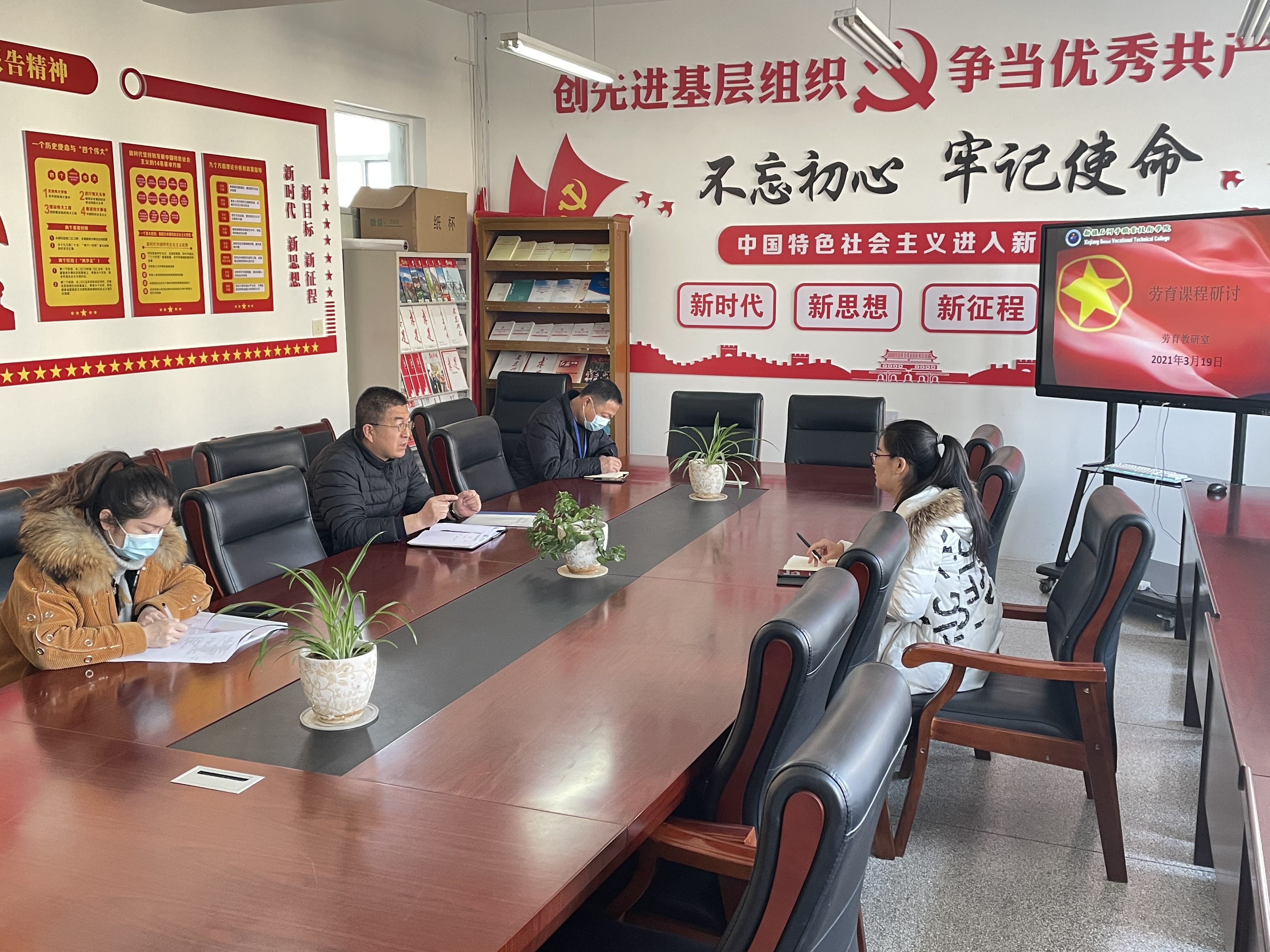 为深入贯彻落实中共中央、国务院《关于全面加强新时代大中小学劳动教育的意见》等相关文件精神,促进学生德智体美劳全面发展,加强和推进新时代劳动教育。3月19日上午,学院劳育教研室在教学楼前楼318会议室召开了课程专题研讨会,本次研讨会的目的是对近期的劳育课程进行交流探讨,加强教师队伍研究课程的积极性,不断开拓课程新局面。教研室主任俞峰主持了会议,机电分院书记辛延波、教务处教师王丽和信息分院教师齐鸣参加了会议。