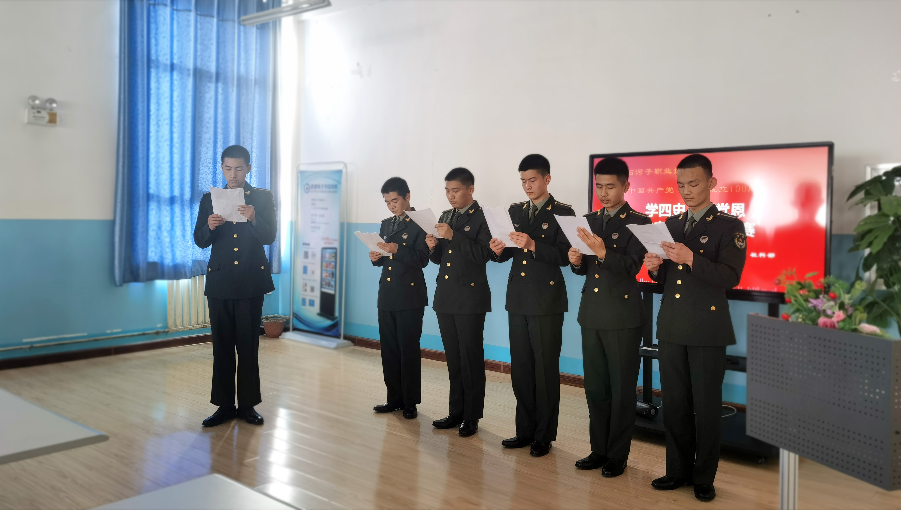 “明镜所以照形,古事所以知今”, 2021年3月25日下午六点,由图书馆和思政部主办的传承红色经典--“学四史,颂党恩”党史故事赛第二场诵读大赛在学院图书馆二楼举行。来自各分院的15名选手参加角逐。大赛邀请了学院部分领导组成了评委组,思政部潘伟伟老师、陈建红老师以及学生代表李博凡、李浩龙、张振伟、贾志豪作为评委。