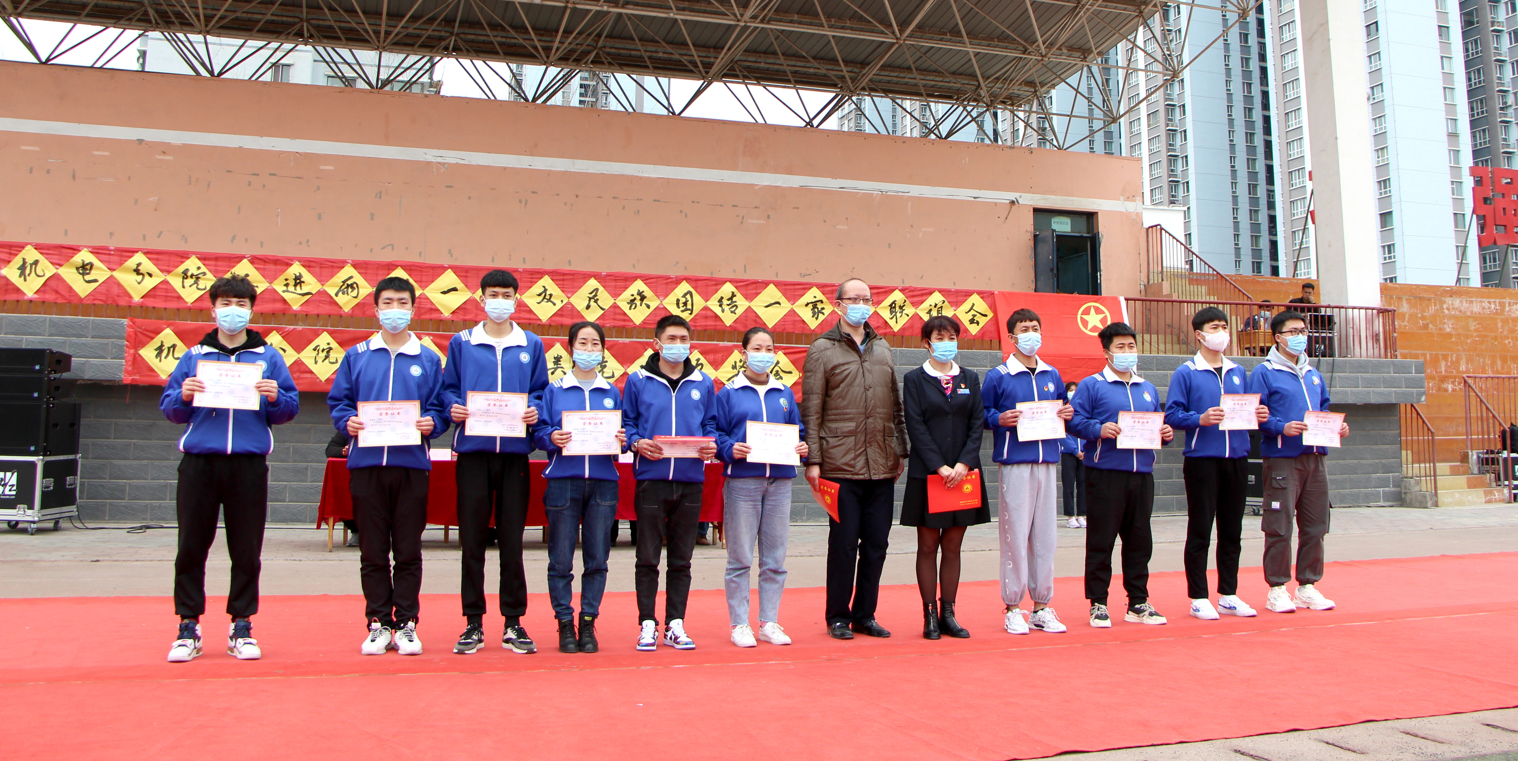 3月26日下午,机械电气工程分院组织开展民族团结一家亲“三进两联一交友”暨2020-2021年度学生活动各类先进颁奖会。学院纪委书记周赞梅、学生处处长韩东、副处长杨徐飞,机电分院书记辛延波、院长顾建疆、副院长尹君,分院全体教职工及民族学生代表参加会议。