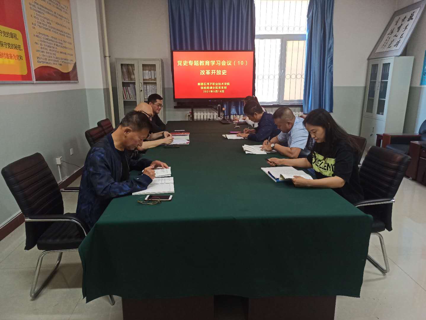 2021年5月18日,技能培训分院党支部开展党史专题教育学习,分院书记李魏超带领分院全体教职工学习《中国共产党简史》选篇《邓小平南方谈话》。