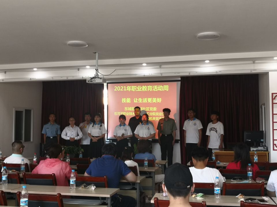 正值师市职业教育活动周开展之际,根据学院2021年职业教育活动周活动统一部署,轻纺化工分院党总支、机关直属党支部积极开展职业教育进社区活动。2021年5月27日下午,轻纺化工分院党总支、机关直属党支部联合东城街道48社区党委,共同开展了“技能,让生活更美好”职业教育进社区主题活动。