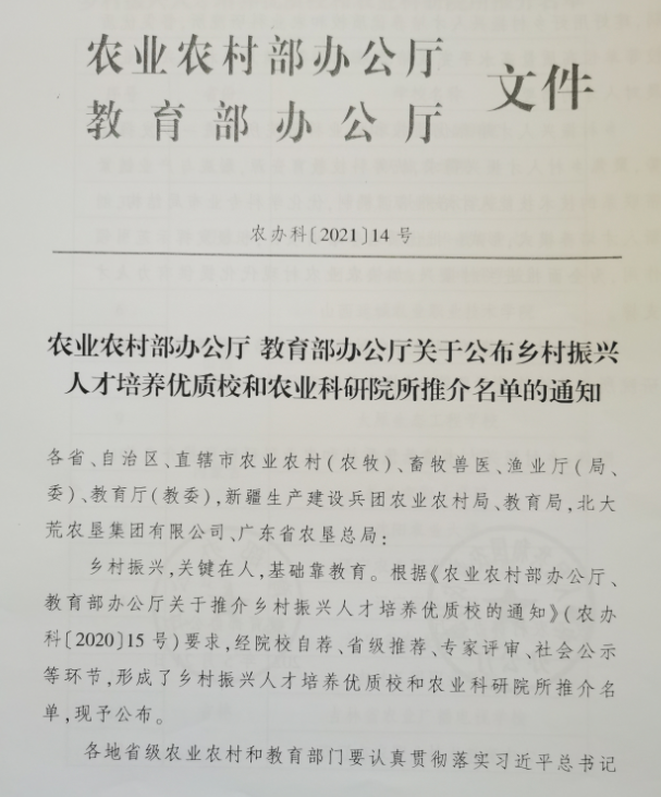5月26日,农业农村部科技教育司、教育部职业教育与成人教育司联合正式发布乡村振兴人才培养优质校和农业科研院所推介名单。Beat365中文官方网站成功入选全国乡村振兴人才培养优质校,并被纳入《乡村振兴人才培养优质校园采录》中。学院作为百所优质校代表受邀参加发布活动,纪委书记晁利君参加了此次活动。
