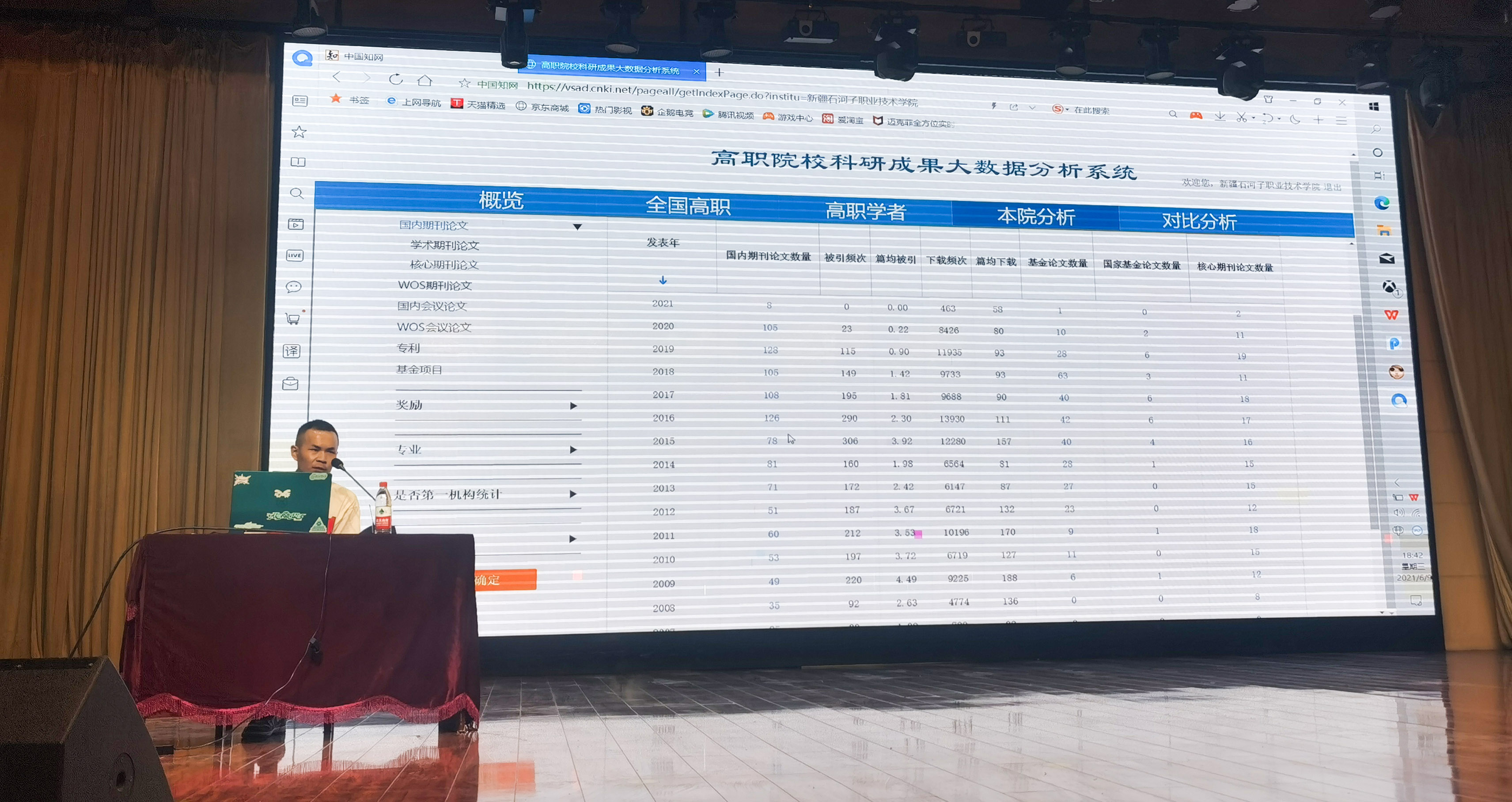 为进一步培养学院教师科研创新意识,提升教师的论文写作水平和科研能力,助推学院“双高”建设。6月9日下午,学院科研处与中国知网新疆分公司联合举办了科研能力提升培训会,知网培训讲师陈浩应邀作了《知网知识服务 助力科研创新能力提升》为主题的讲座,全体教师参与了此次活动,讲座由科研处处长胡英主持。