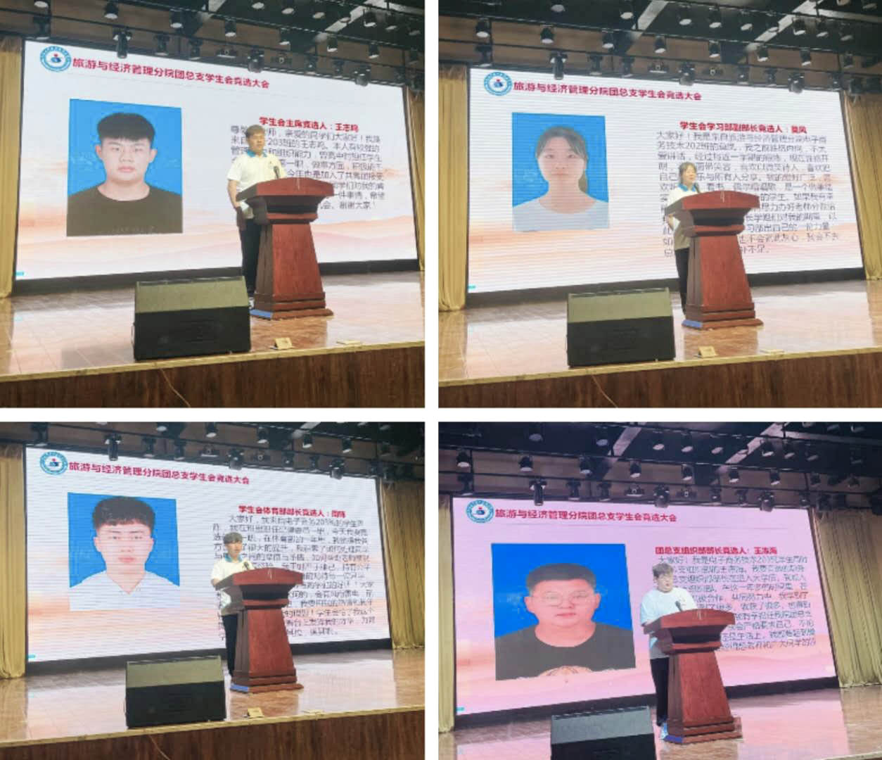 2021年6月15日,旅游与经济管理分院团总支学生会表彰暨换届大会在综合楼4楼召开。参与大会的有分院党博文书记,分院团总支书记王亚平老师,学生会主管老师傅冬、许宁宁以及所有学生会成员。大会首先由分院党总支党博文对本届学生会工作进行了总结并向同学们的辛苦付出表示感谢,由王亚平老师宣读第十二届学生会聘任名单并颁发聘书,许宁宁老师宣读第十三届优秀学生会干部名单并颁发荣誉证书。紧接着,到了紧张激动的选举换届阶段。各位候选人分别从自身特点、对部门工作认知、对未来工作的想法等方面作了简短的演讲,力争展现最真实最立体的自己。候选人精彩的演讲,博得了在场观众的阵阵掌声。最后,党博文书记对竞选大会做了精彩的点评和总结,肯定了大家的热情和积极性,并提出了殷切的希望,希望同学们能够增强学习意识、服务意识、责任意识,成为一名优秀的学生会干部。