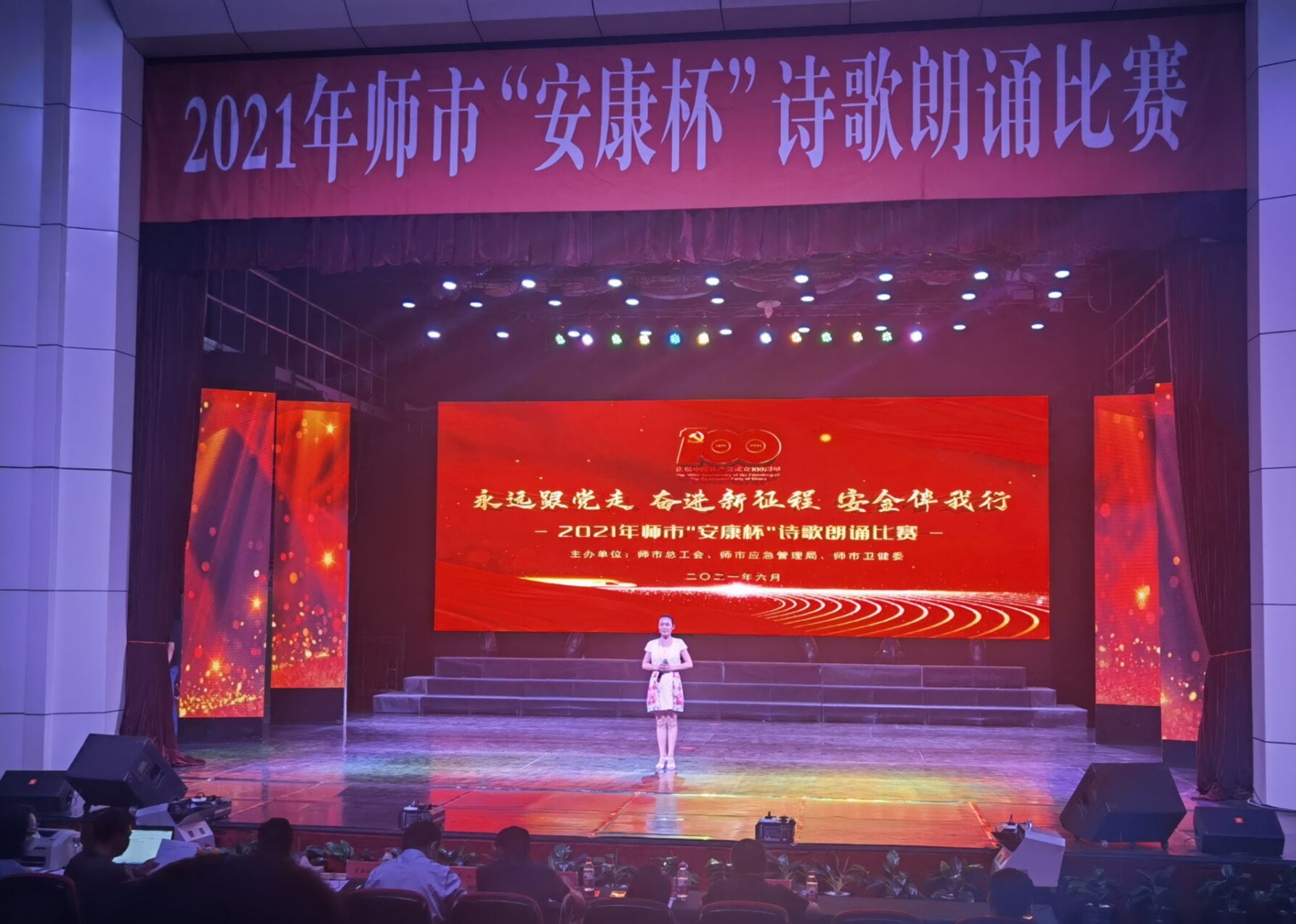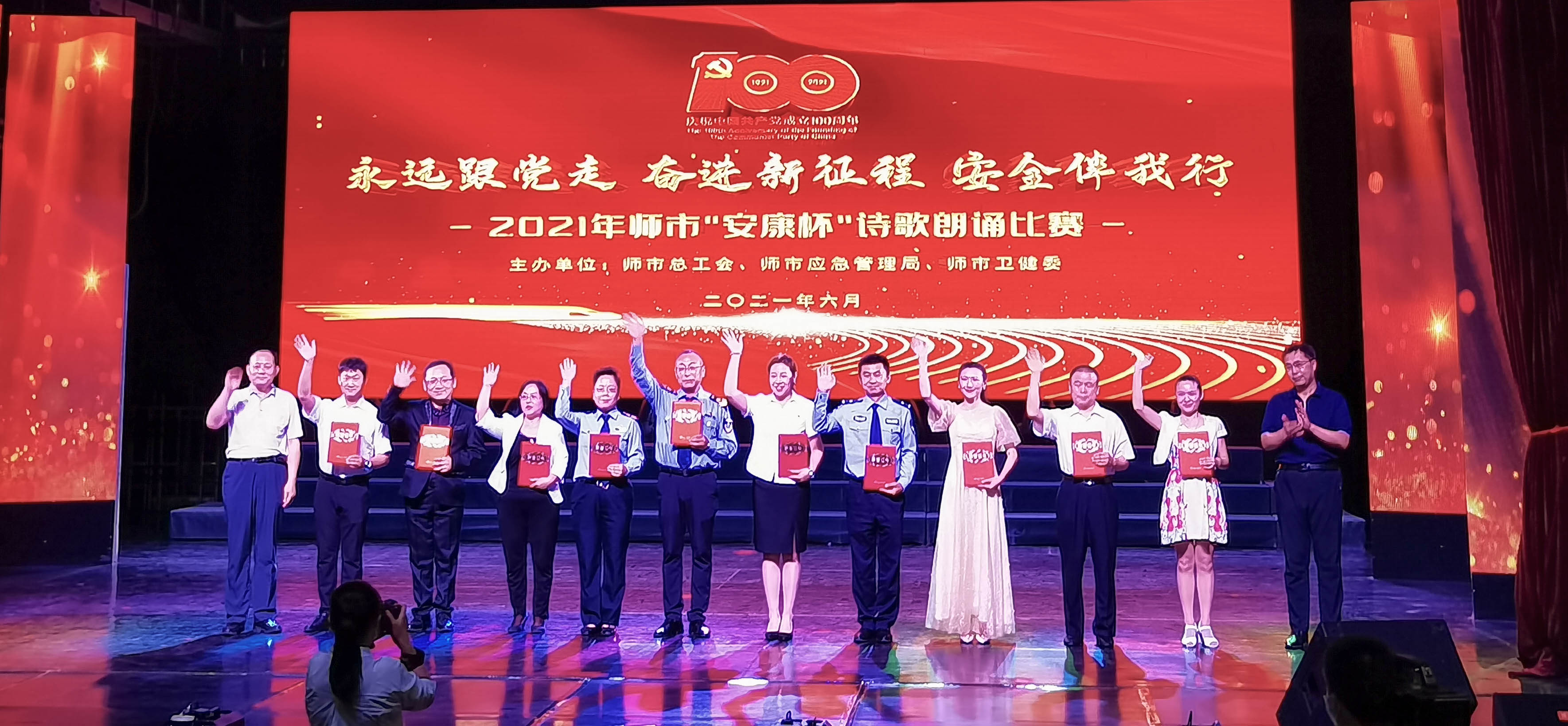为宣传安全生产政策法规,传播安康知识,弘扬安全文化,提高职工的安康意识,教育职工珍爱生命、遵章守纪、远离事故。2021622日,由师市总工会、应急管理局和师市卫健委联合举办的永远跟党走 奋进新征程 安全伴我行”为主题的2021年师市安康杯诗歌朗诵比赛在工人文化宫举行。