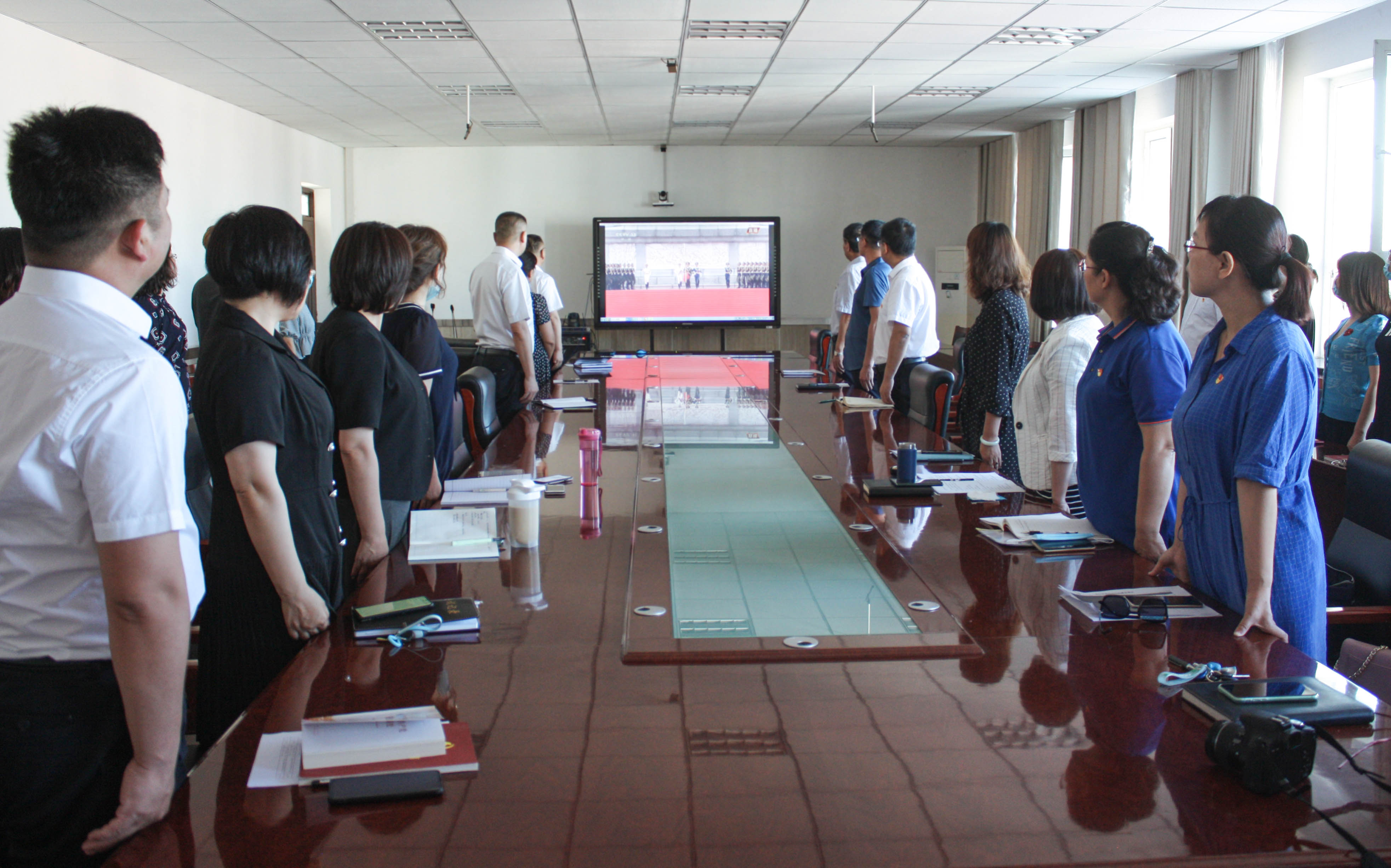 观看过程中,大家一直心潮澎湃,红旗招展、军乐嘹亮、礼炮轰鸣、“巨轮”起航、“雄鹰”翱翔,展示着在中国共产党领导下祖国的飞腾发展,国家富强、民族振兴、人民幸福的辉煌成就。