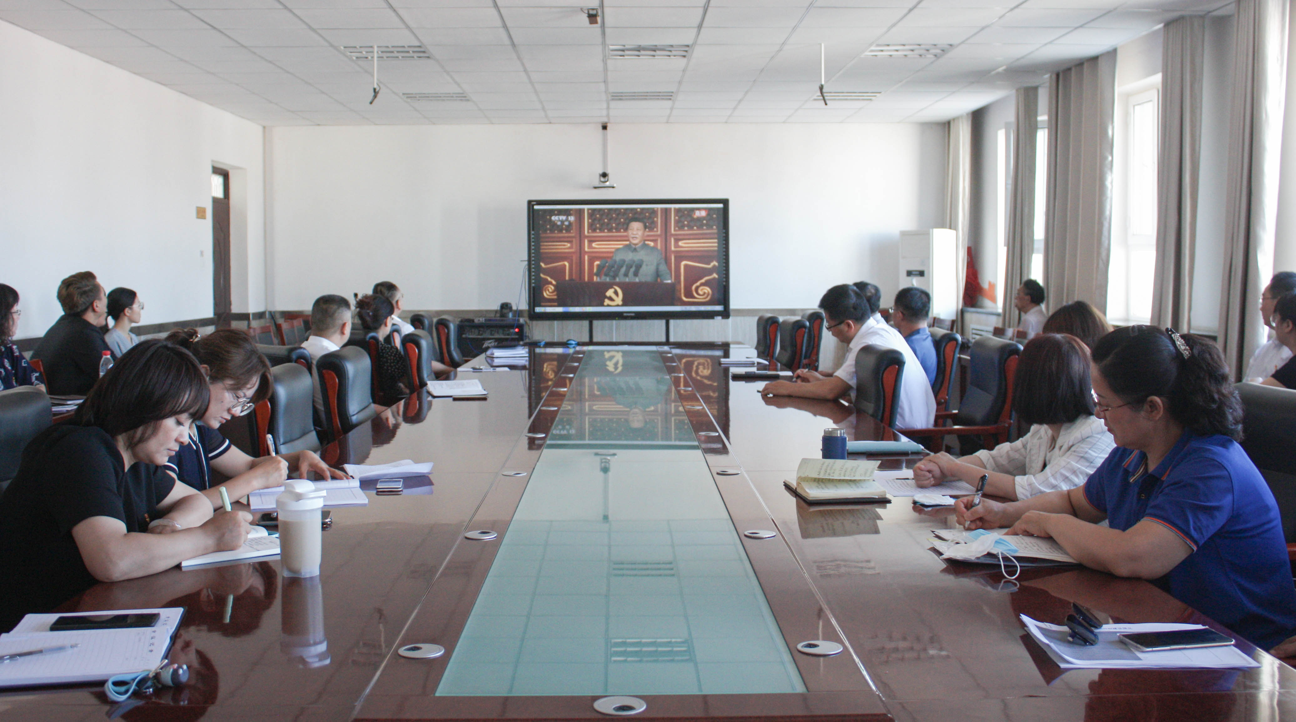 (通讯员王需 张宇 袁晓栋)2021年7月1日上午8时,天安门广场上人流涌动,7万余名各界人士怀着激动的心情出席“奋斗百年路 启航新征程”庆祝中国共产党成立100周年大会,同样怀着激动心情的还有万余名Beat365中文官方网站师生。学院党委书记史文革、副院长耿荣、李卫、张涛与机关直属支部教职工共同看了中央广播电视总台和新华网现场直播,各分院教职工集中观看,学生放假在家自行观看。
