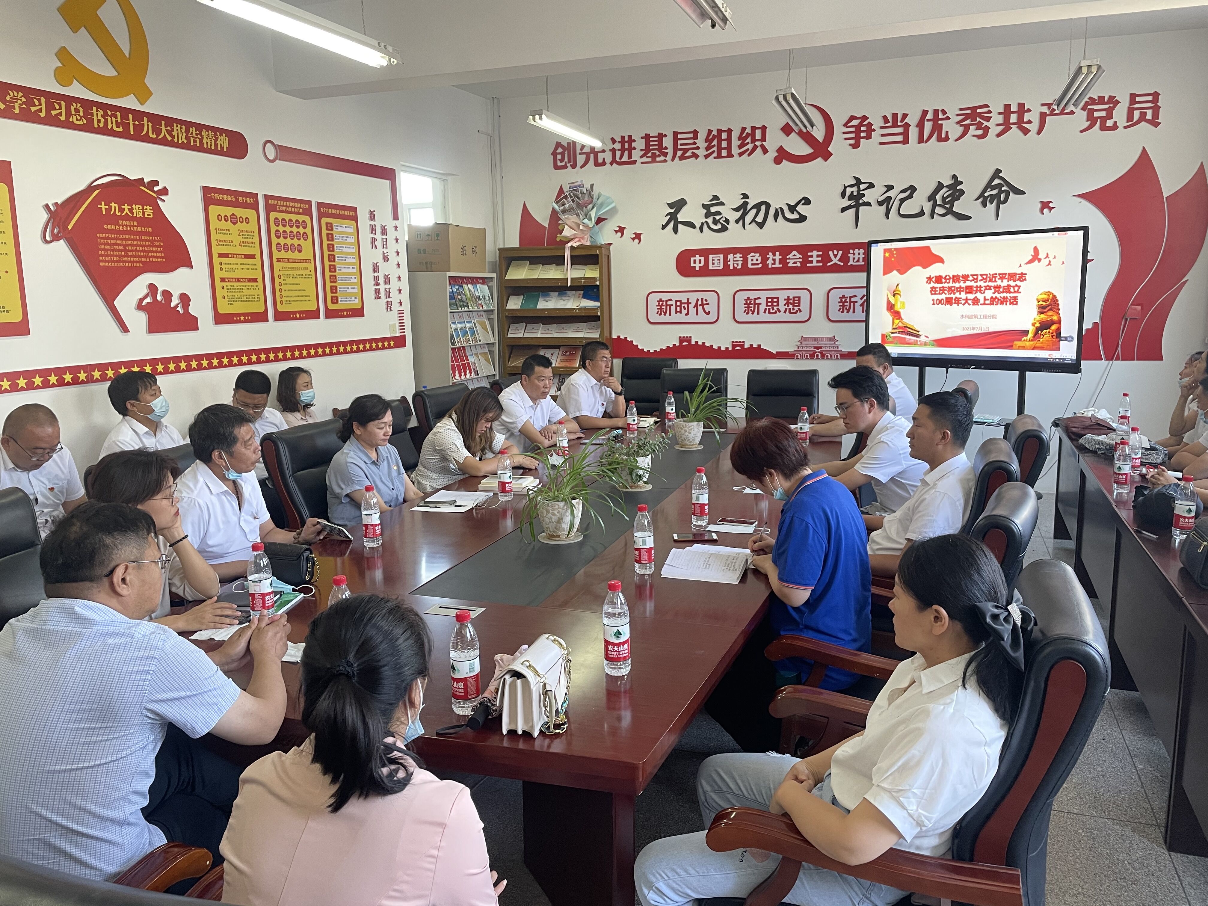 思政部主任张敏老师发言说,在党的100岁生日之际,我的内心充满感慨,回首中国共产党走过的百年历程,是一条艰难曲折的道路。我作为一名共产党员、一名思政教育工作者,就更要坚守初心,做到坚定信念、牢记誓言,用心引领、勇往直前,饮水思源、不忘来路,把个人的能量深深融入为党育人、为国育才的实践中,为新时代职业教育事业贡献力量。