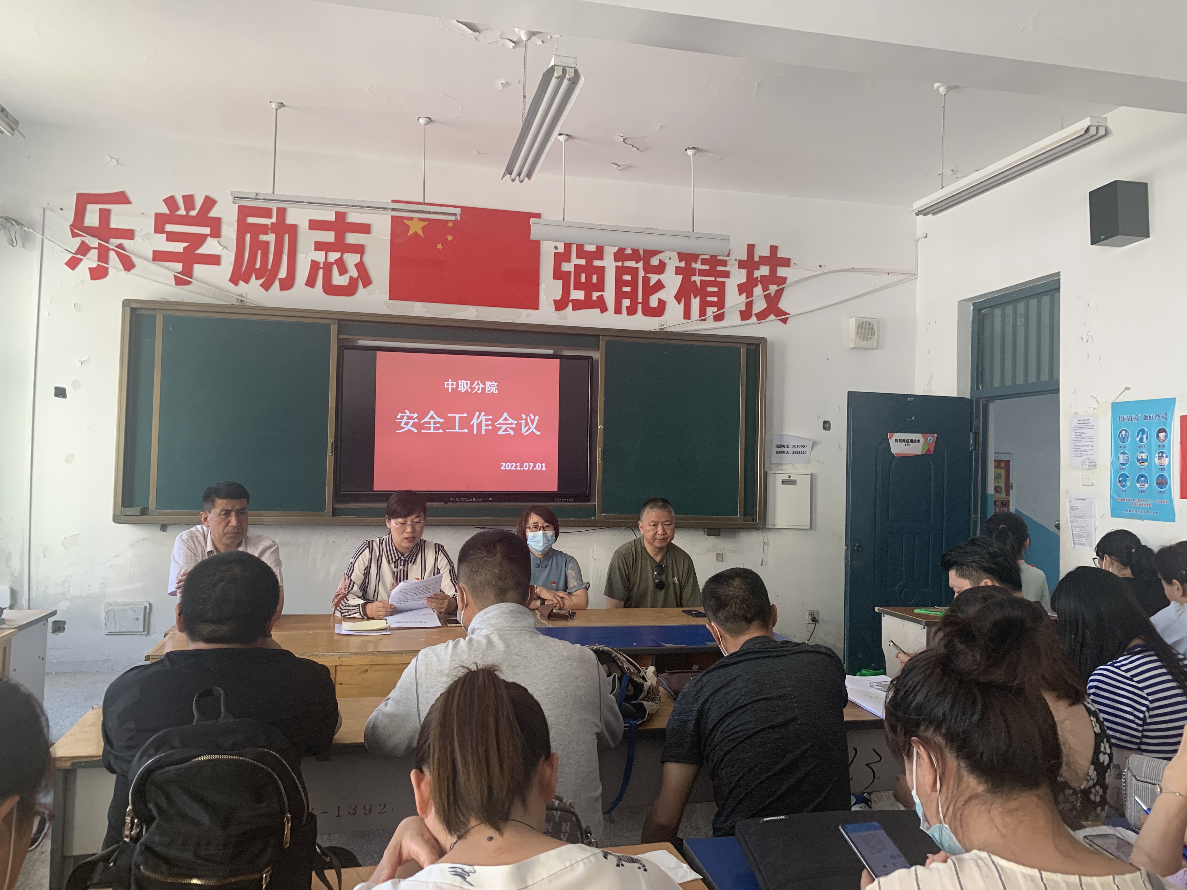 为做好暑假安全工作,增强学生及家长的安全意识,杜绝各类安全事故发生,保障广大师生生命安全,7月1日,中职分院召开暑期安全工作会议。会议由分院书记张海芸主持,中职分院全体教师参加会议,认真学习《第八师石河子市教育局就暑期安全致中小学生、幼儿家长的一封信》《Beat365中文官方网站关于2021年暑期进一步开展学生防溺水安全教育》的通知。
