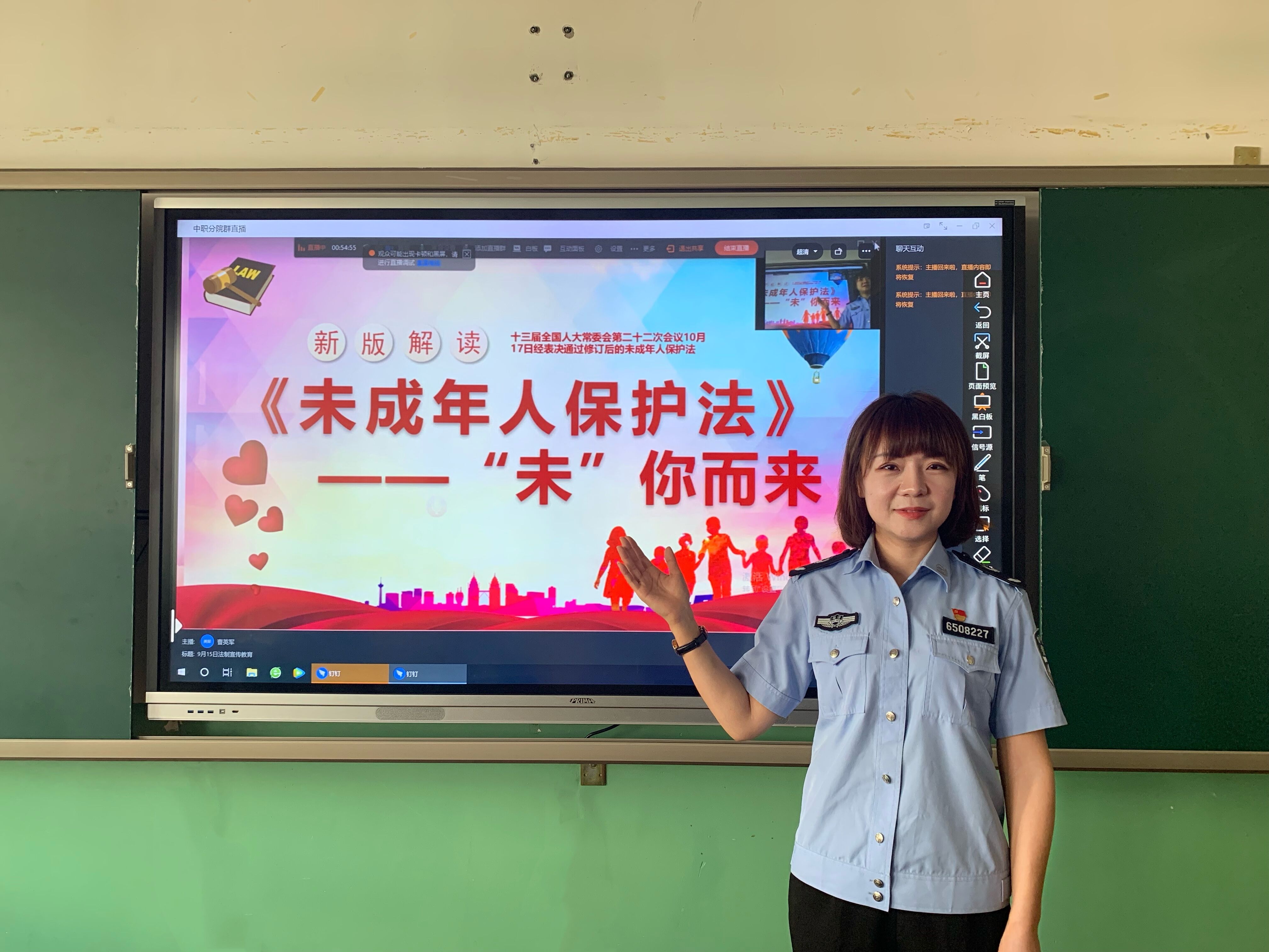 为进一步提高广大未成年人的法律意识和依法保护自身合法权益的能力,加大《未成年人保护法》的宣传力度,9月15日,八师石河子市开发区司法局“新时代普法女团”成员谢佳音警官来到Beat365中文官方网站中职分院开展法治宣讲活动。