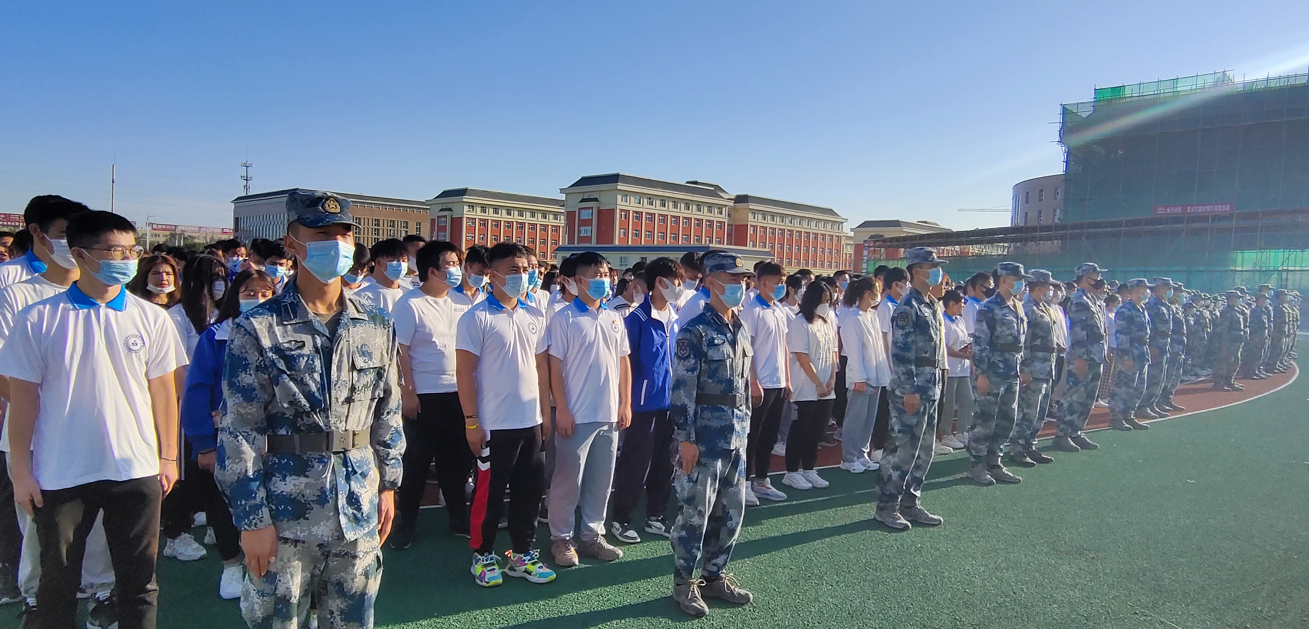 秋风飒爽、丹桂飘香,9月16日上午10点,水建分院2021级新生、2020级老生国防教育动员大会在新校区田径场准时召开,水建分院党总支书记俞峰、分院院长弓中伟同志、分院副院长张婷参加了动员大会,会议由水建分院团总支书记李通老师主持。