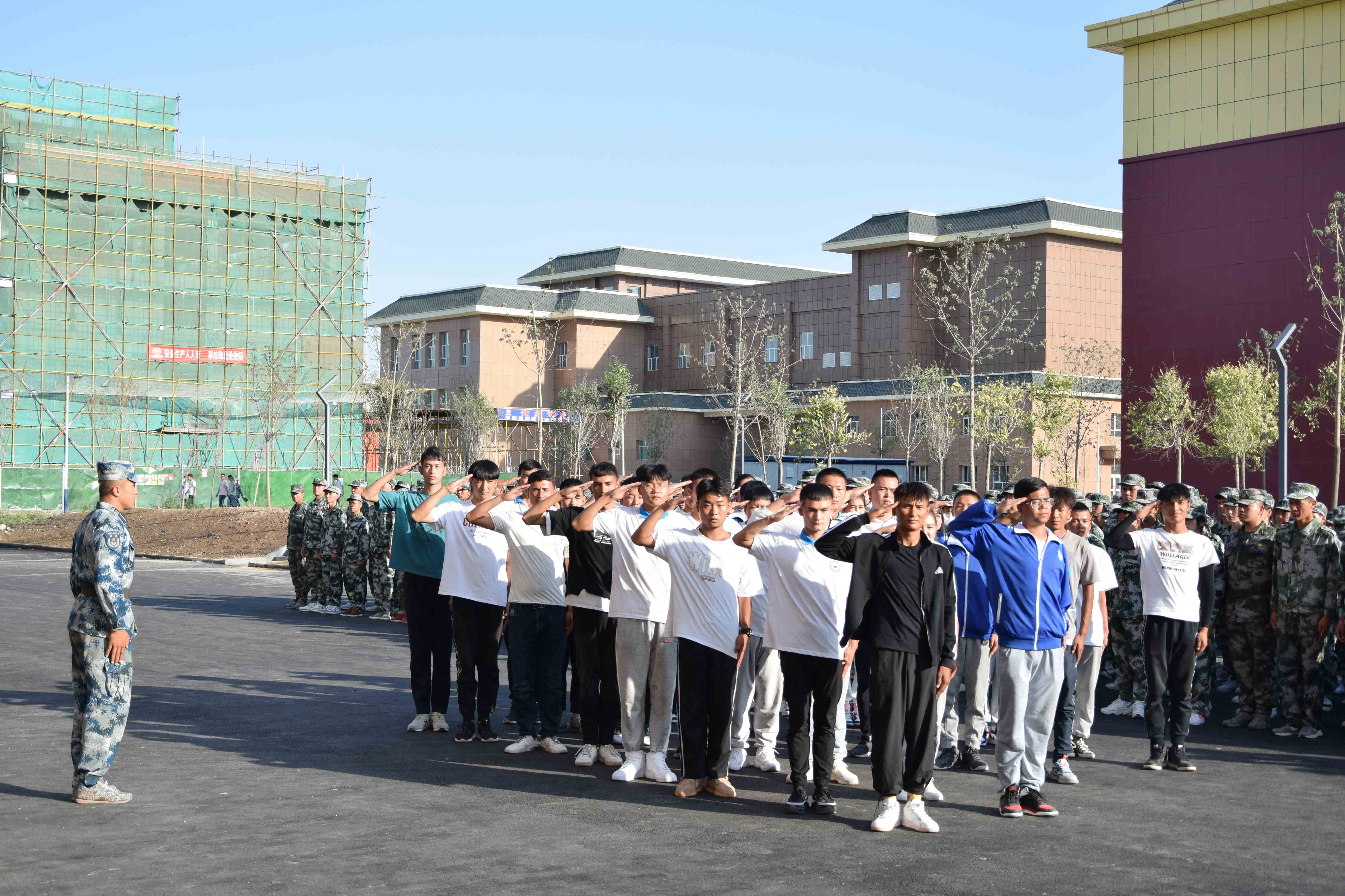 2021年9月18日,秋风微凉、金桂飘香,Beat365中文官方网站水建分院2020级学生国防教育汇演在新校区卫生楼前举行。参加此次汇演的领导有Beat365中文官方网站副院长耿荣、水建分院党总支书记俞峰、副院长张婷以及水建分院全体教师,21级新生全程观摩了此次汇演。