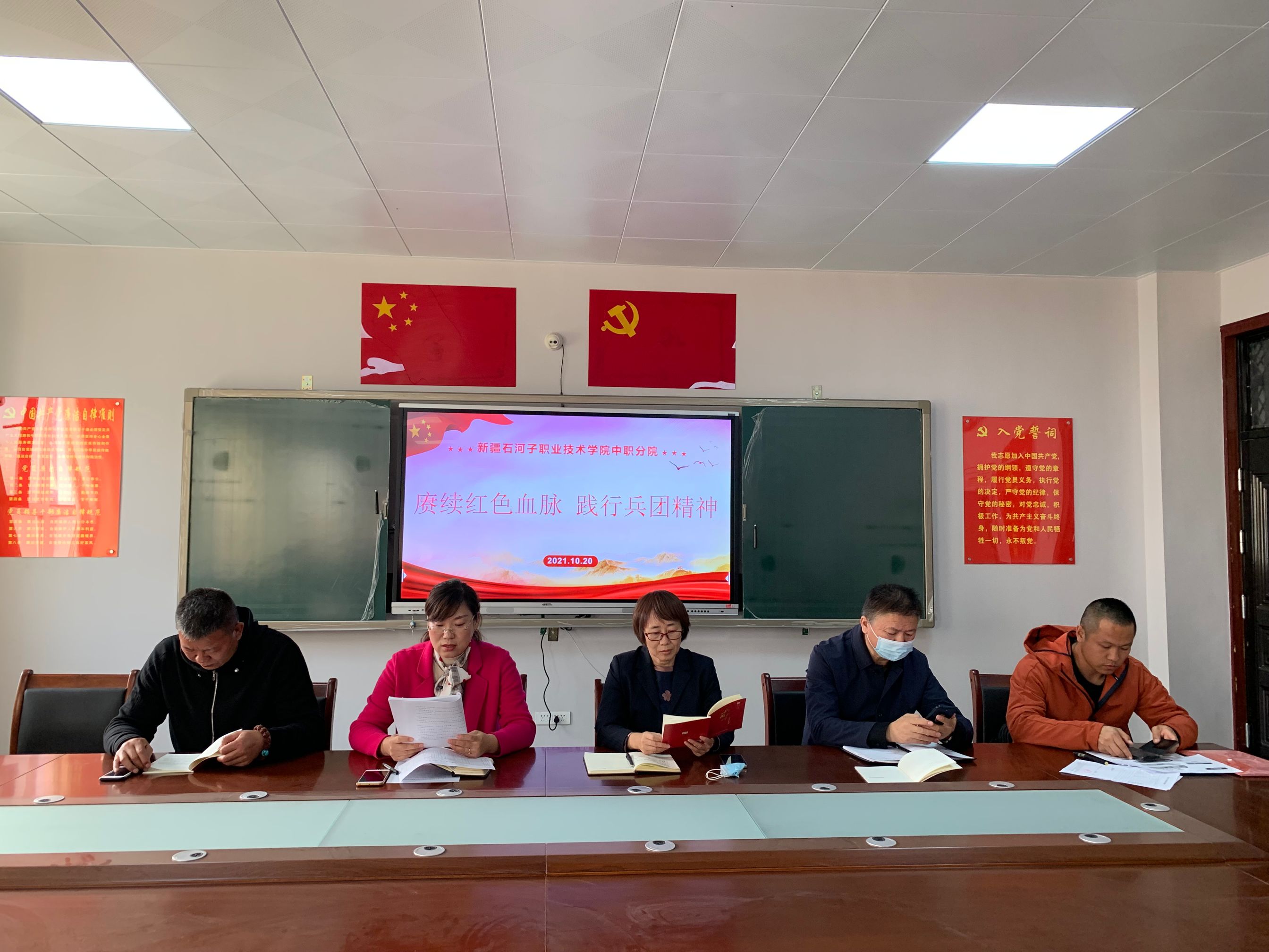 有一种红色,永不褪色;有一种精神,赓续传承。兵团人如同胡杨一样扎下根,也将兵团精神的旗帜代代相传,为“庚续红色血脉,践行兵团精神”,中职分院书记张海芸、院长吴晓晖带领分院全体党员教师召开了党员扩大会议进行学习,会议中张海芸书记围绕习近平总书记赴山东考察重要讲话精神进行了解读;吴晓晖院长立足习近平新时代中国特色社会主义思想,讲解了如何在新思想的引领下身体力行践行兵团精神;曹英军副院长分享了359旅屯垦戍边的故事,带领大家学习了胡杨精神的内涵;丁雷老师解析了老兵精神,还原47团和田平叛的英雄事迹。会议过程中,各位党员教师积极主动、认真学习,会后反响热烈、积极讨论。历史的足迹,在回望中更加清晰,任凭光阴流转,兵团精神始终是融入兵团儿女血脉的信仰,并在岁月中不断丰富、传承,凝聚成生生不息的力量。