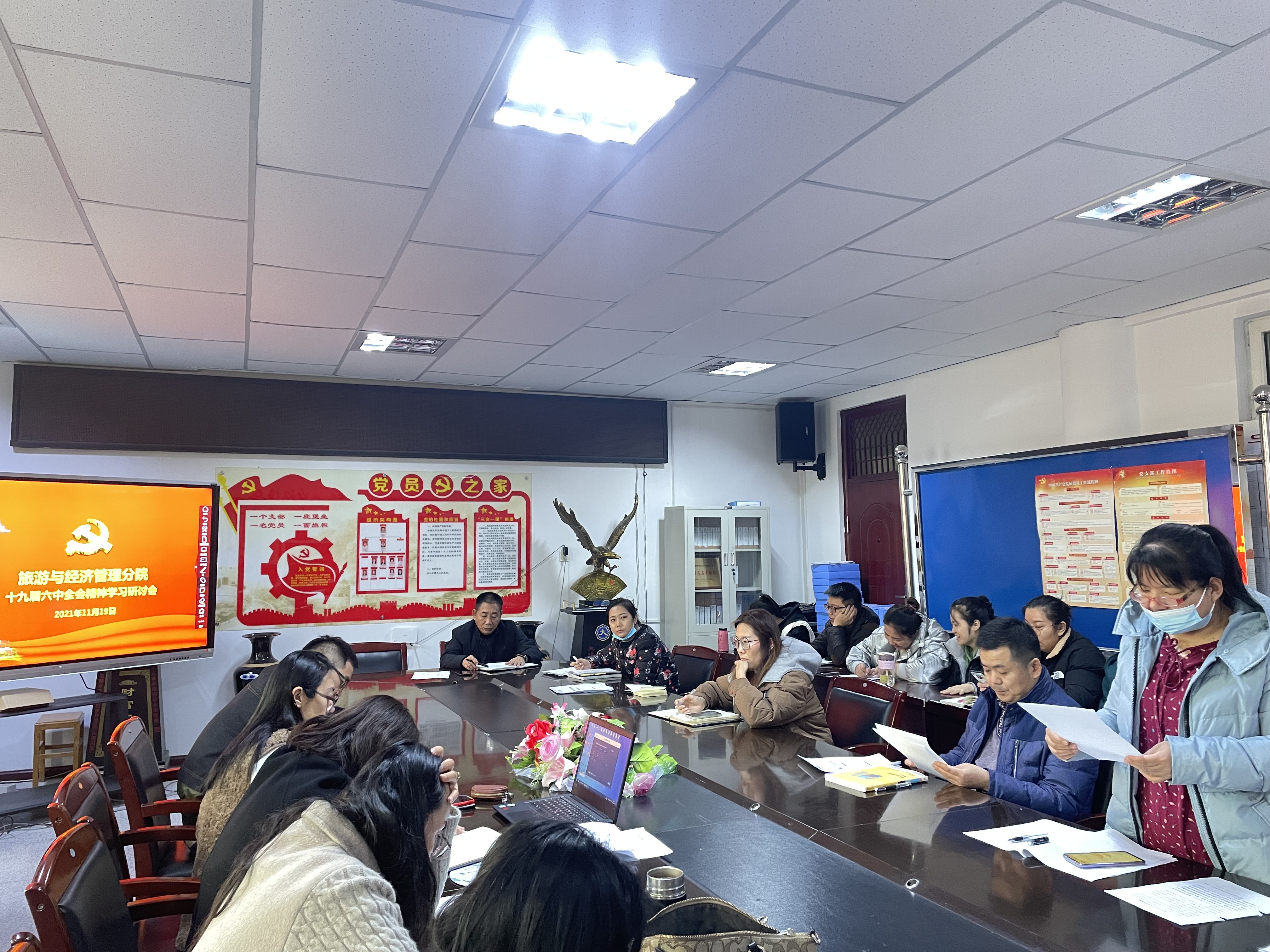 为认真学习贯彻党的十九届六中全会精神,深刻领会和全面把握党百年奋斗的伟大成就、伟大意义和伟大经验,2021年11月18日,旅游与经济管理分院召开专题研讨会,学习贯彻党的十九届六中全会精神,分院党总支书记党博文主持会议。