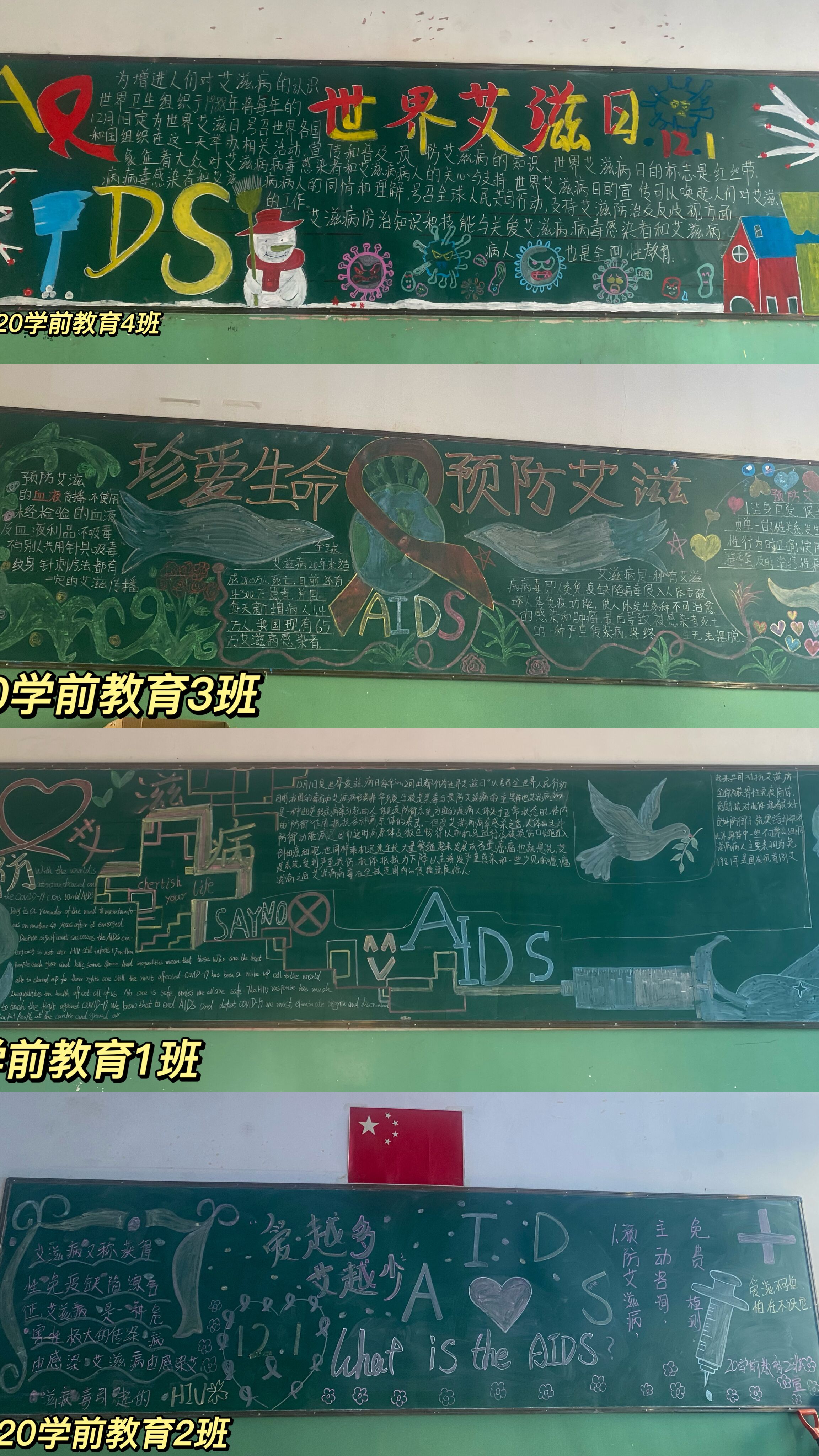 为进一步宣传防艾活动,创设良好育人环境,增强师生的防艾意识,防艾关爱生命,遏制艾滋,奉献社会、促进社会文明和谐,Beat365中文官方网站中职分院开展了“生命至上·健康平等”为主题的系列防艾宣传活动,倡导同学关爱社会、关爱生命,关爱艾滋病人,提高同学们对防艾的认识,呼吁全体同学拿出自己的责任和义务积极参与到防艾的活动中来。中职分院团总支积极筹备活动,与各班级班委进行协商沟通,深入班级进行宣讲。利用宣传展板、召集分院所有在校班级绘制黑板报、手抄报、防艾征文、播放防艾宣传片。本次宣传活动,同学们全面了解了关于预防艾滋的生活知识及艾滋病主要的传播方式,对创造健康文明校园,提高学生的防艾意识做出了积极的行动。